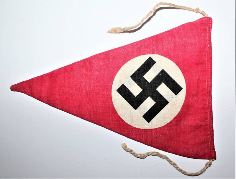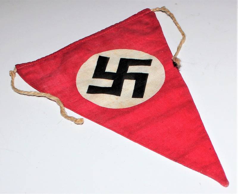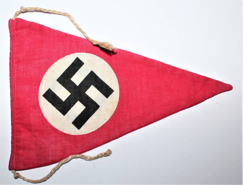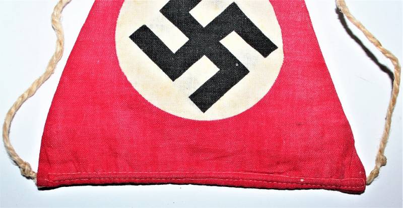 Bandierina da finestra triangolare in ottime condizioni con solo patina del tempo, senza buchi, strappi e cuciture perfette. Originale 100% WWII periodo.