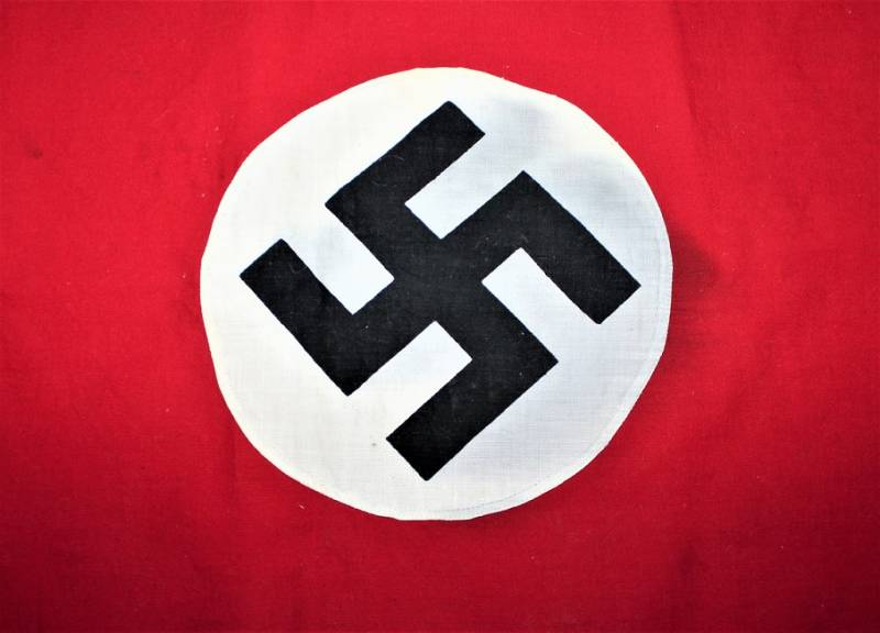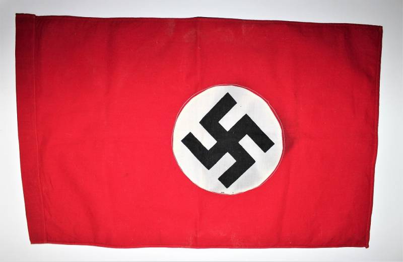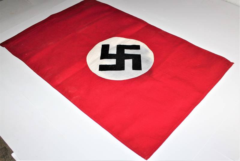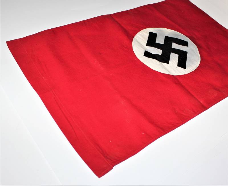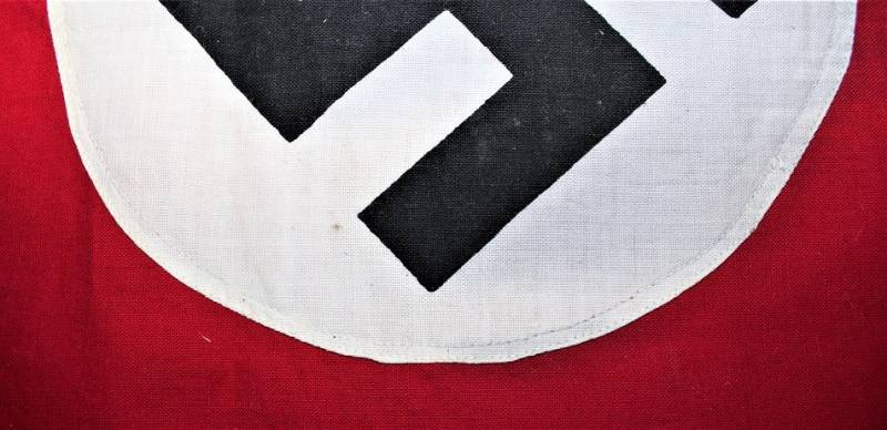 Stendardo-bandiera Politica NSDAP in ottime condizioni, senza buchi o strappi, cuciture perfette, solo leggera patina del tempo, dimensioni 58x37. Originale 100% WWII periodo.