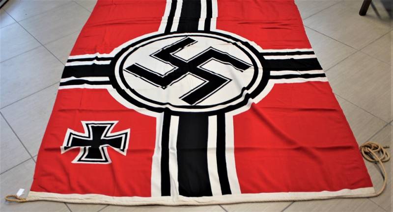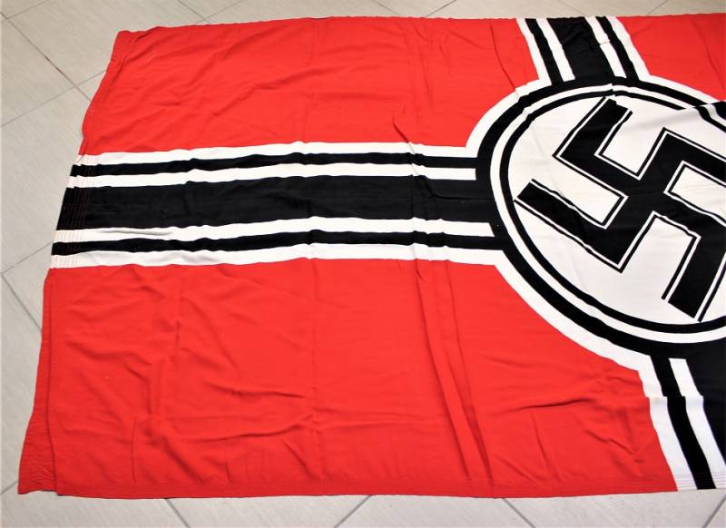 Stupenda bandiera da combattimento della Kriegsmarine in condizioni perfette quasi pari al nuovo, senza buchi o strappi, cuciture perfette, dimensioni 150x250, marcata con aquila della Marina, dimensioni e nome del fabbricante. Originale 100% WWII periodo.