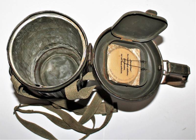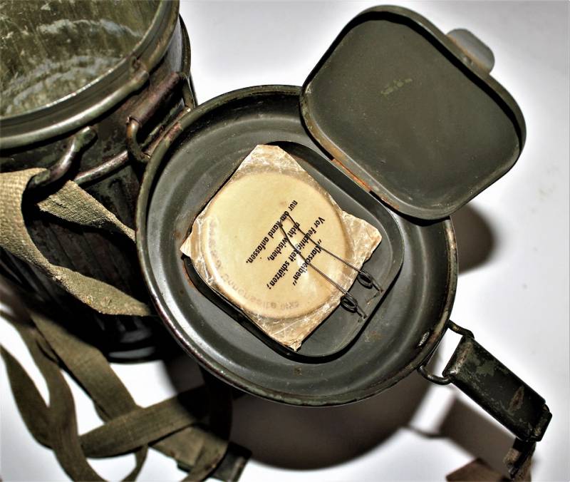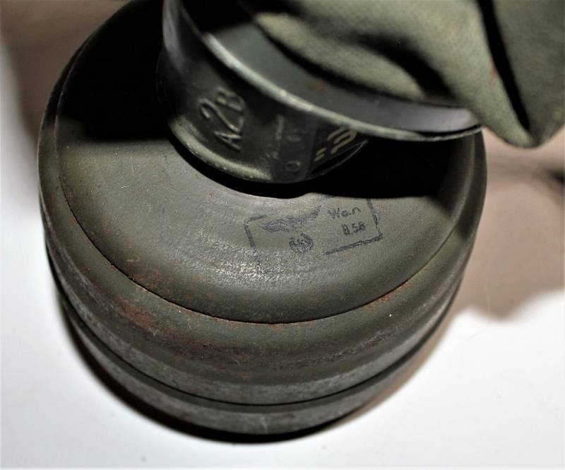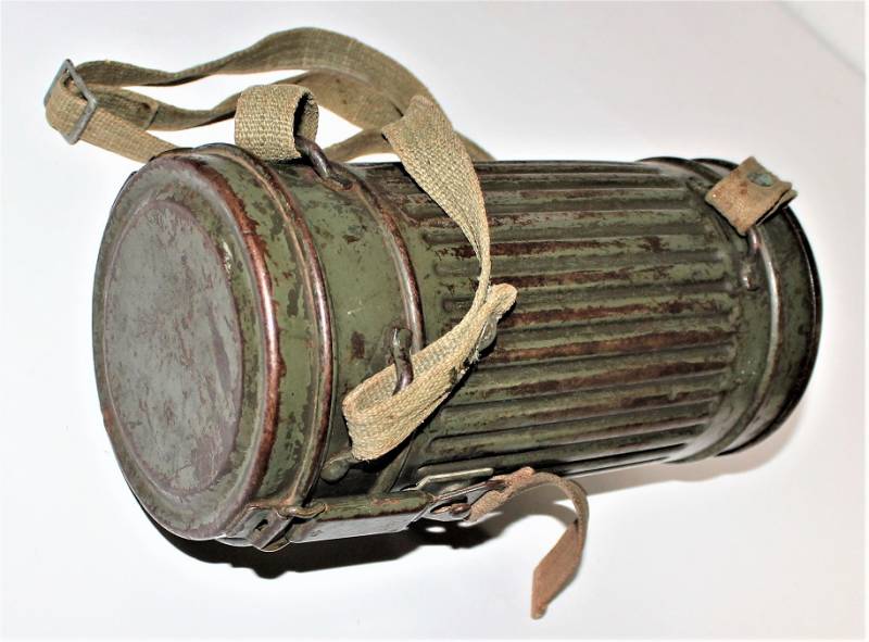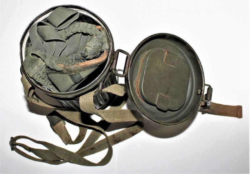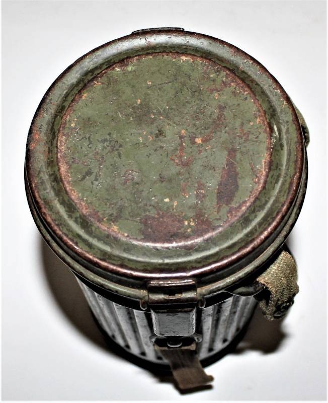 Maschera antigas di 1°modello, contenitore basso, nata in colorazione verde chiaro 1°tipo allŽ85% in ottime condizioni, non restaurata o riparata, con leggeri segni del tempo e dellŽuso, completa in tutte le sue parti, compreso cinghiaggio in canapa e lenti di ricambio. Marcata internamente con codice fabbricante e data 1937. Originale 100% WWII periodo.