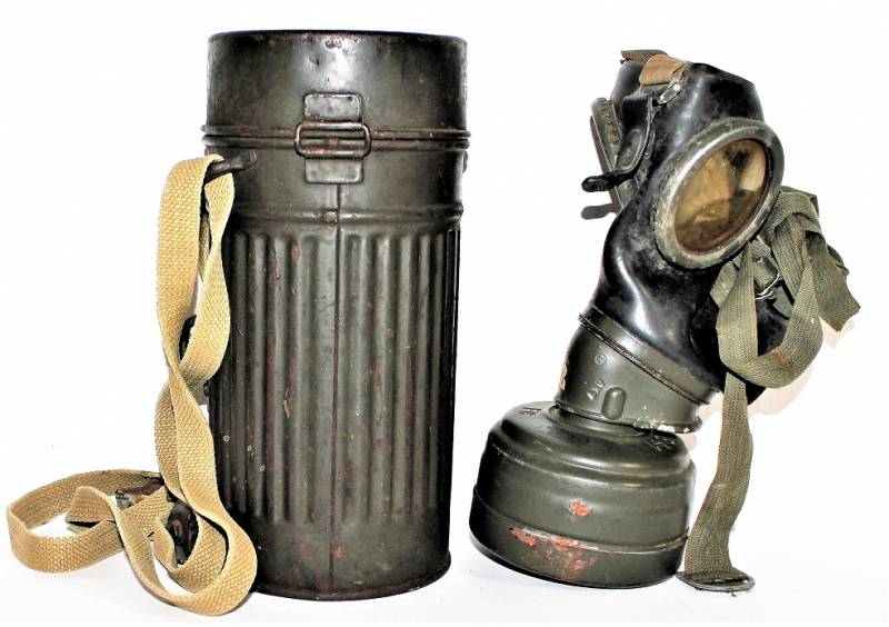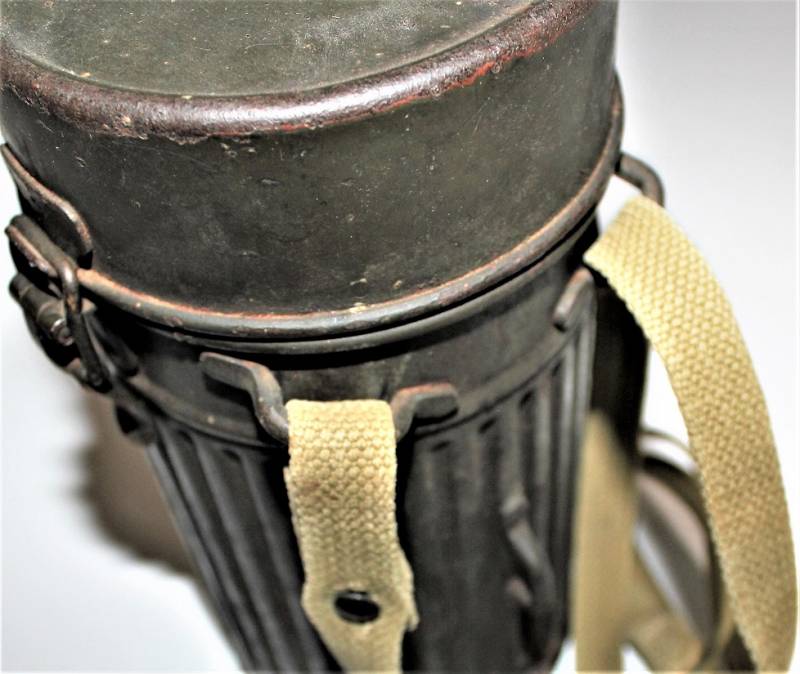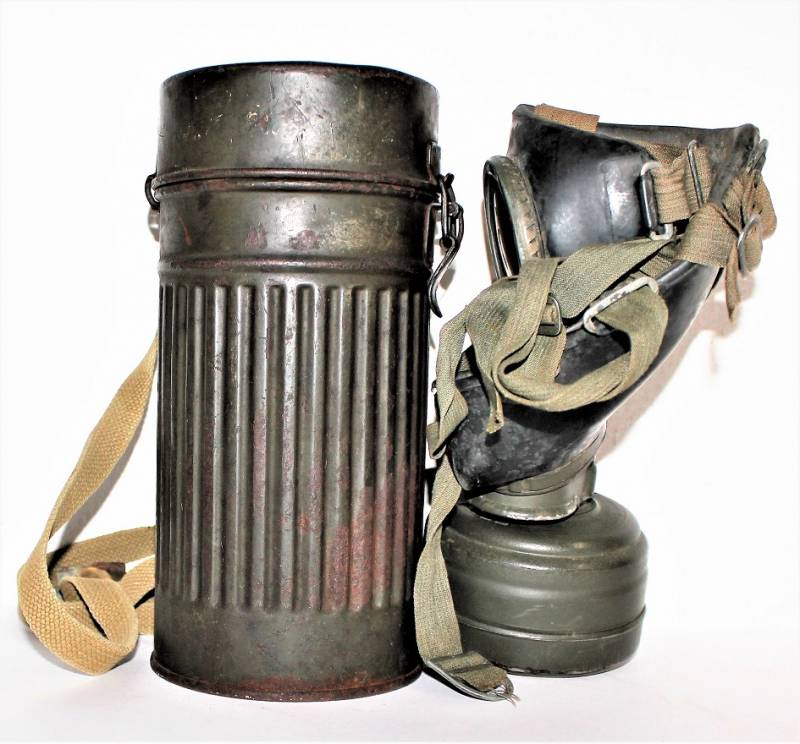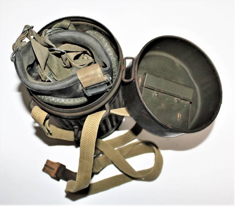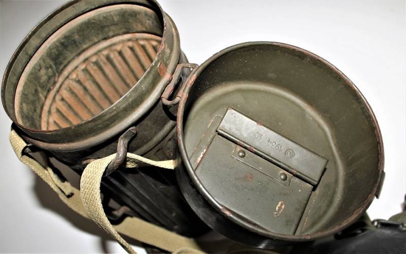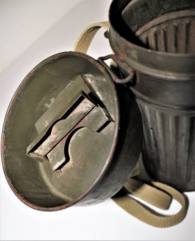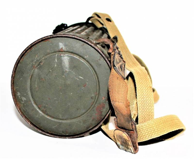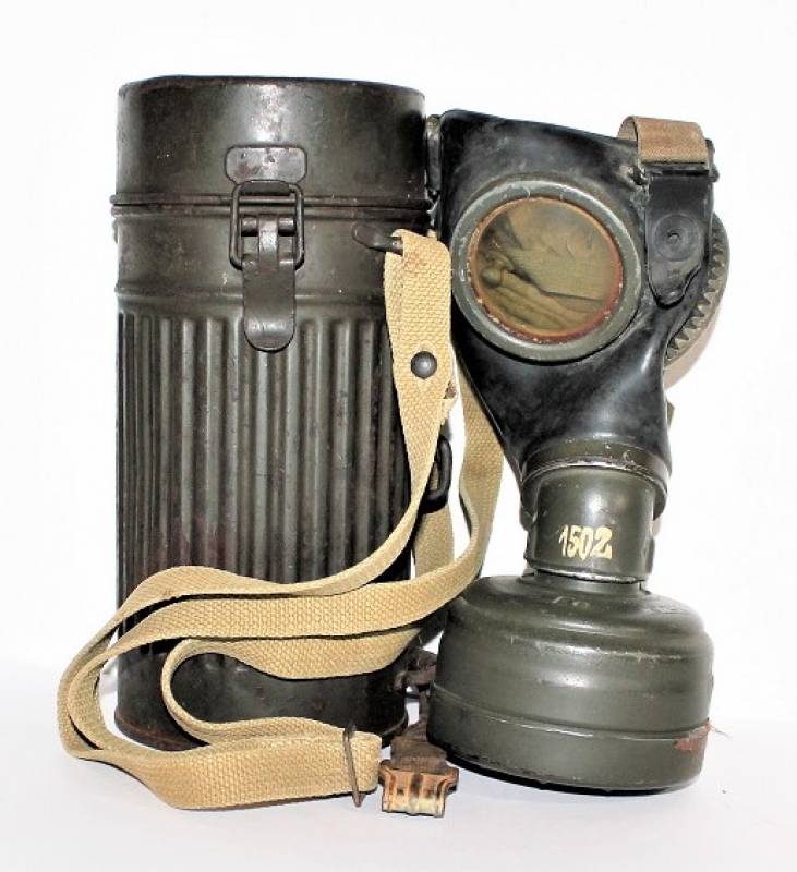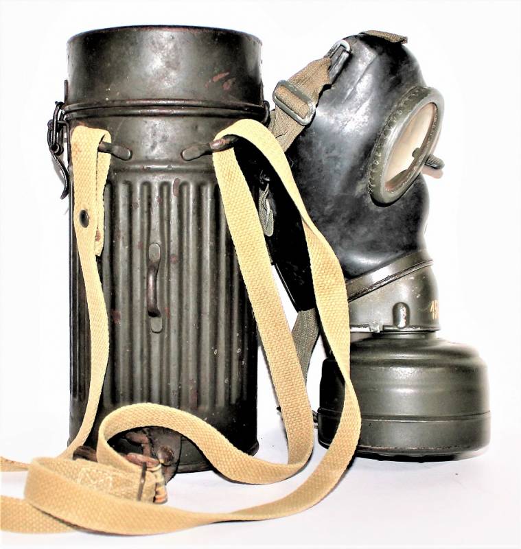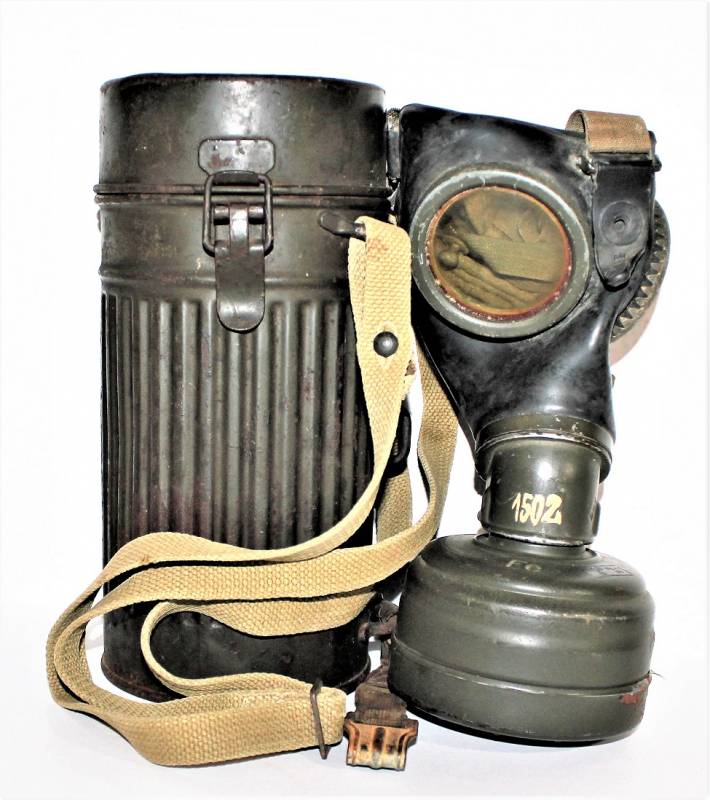 Maschera antigas mod.30 della Difesa Civile Luftschutz in buone condizioni, non restaurata o riparata, completa del suo cinghiaggio in tela, solo con leggera patina del tempo e dellŽuso, colorazione verde scuro feldgrau circa allŽ85%, le lenti di ricambio sono mancanti, marcata con codice fabbricante e data 1934.