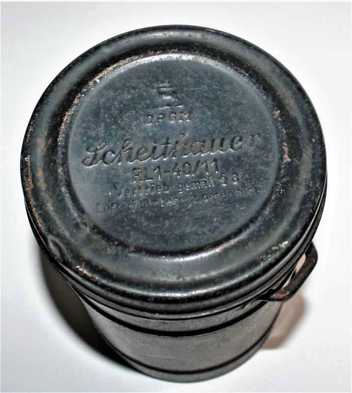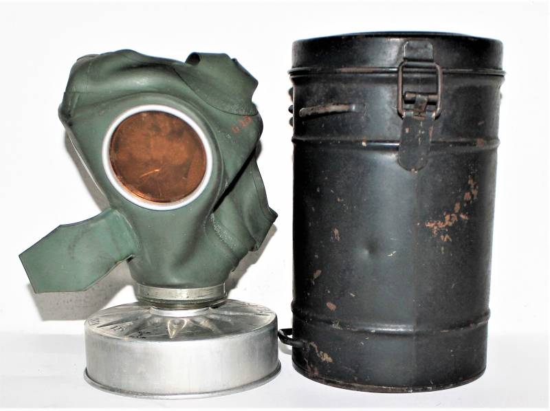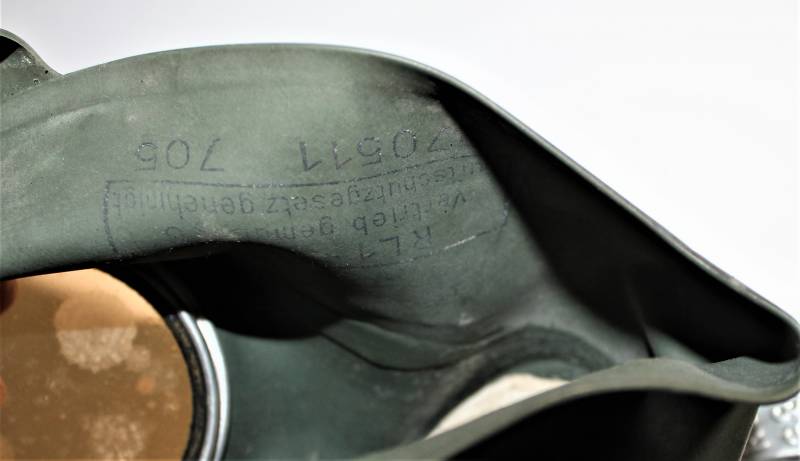 Maschera antigas della Luftschutz in buone condizioni, nata in verniciatura blugrau al 90%, non restaurata o riparata ma con segni del tempo e dellŽuso, marcata con fabbricante e codici. Mancano le cinghie. Originale 100% WWII periodo.
