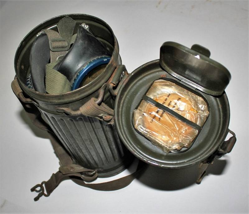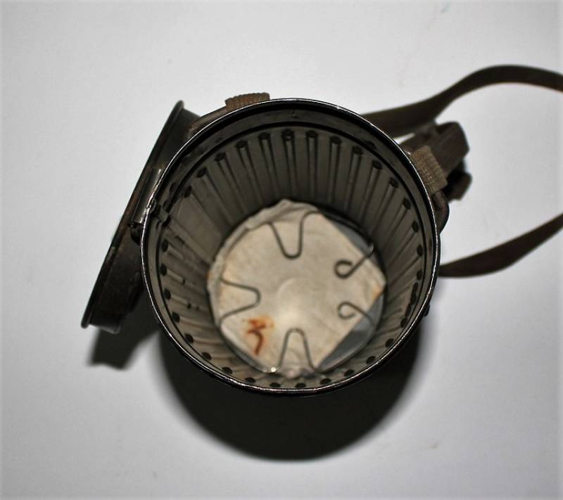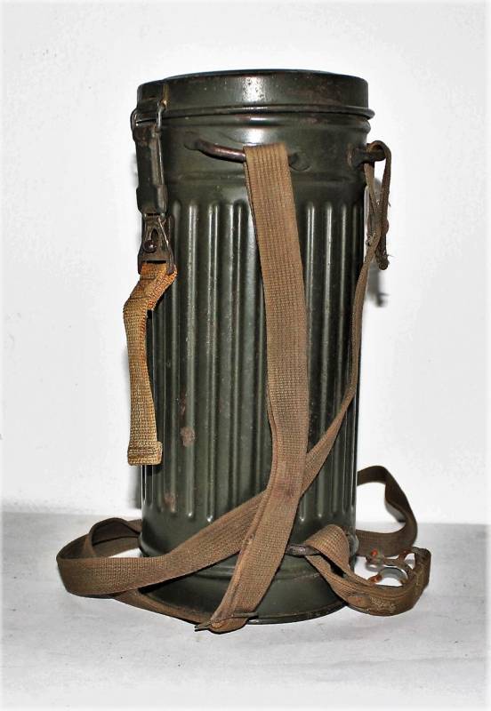 Maschera antigas nata in colorazione verde scuro al 90%, in ottime condizioni, con leggeri segni del tempo e dellŽuso, completa in tutte le sue parti, compreso cinghiaggio in canapa, lenti di ricambio, molla e straccio. Marcata internamente con la sigla del fabbricante. Originale 100% WWII periodo.