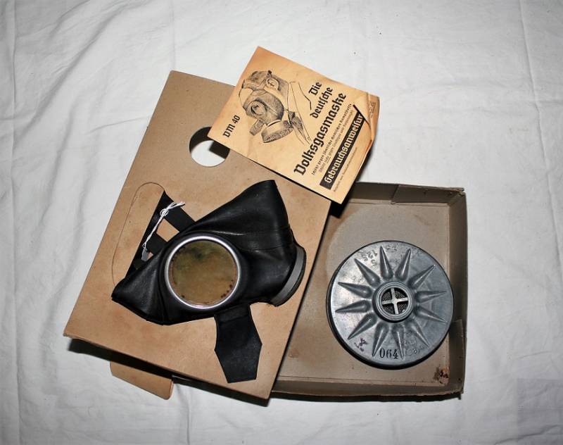 Maschera antigas della protezione civile Luftschutz, nuova di magazzino, completa di tutto, nella sua scatola originale di cartone. Originale 100% WWII periodo.