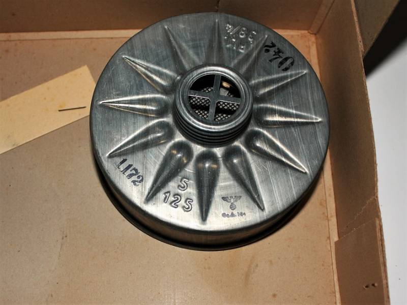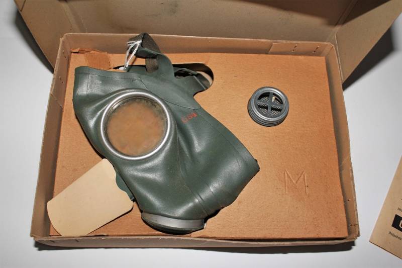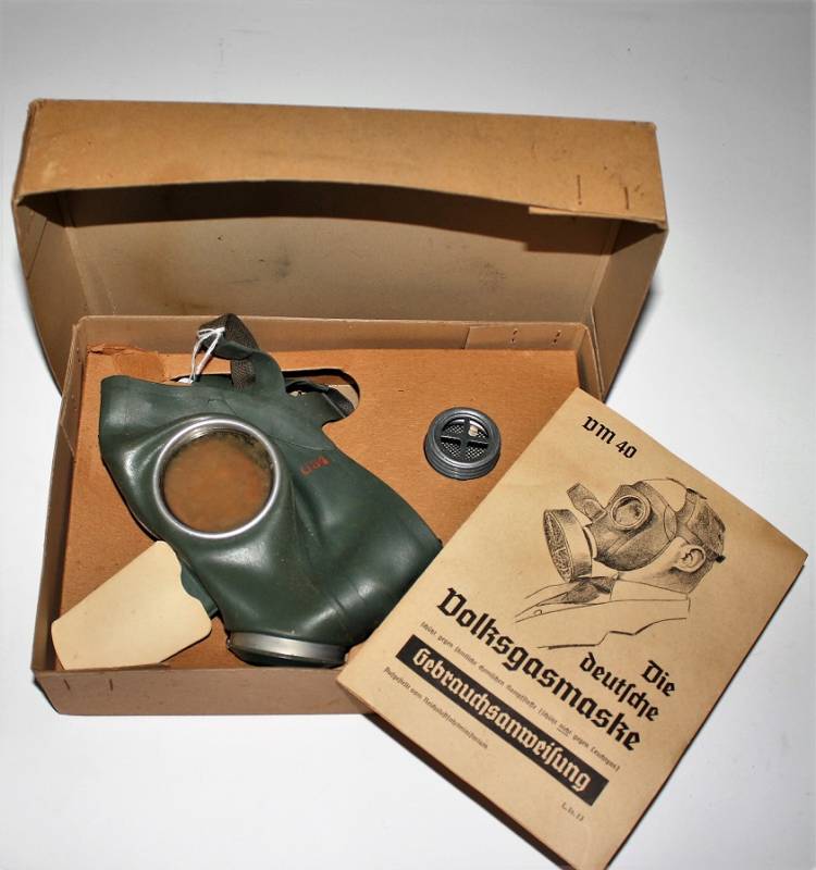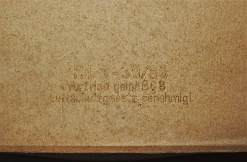 Maschera antigas della protezione civile Luftschutz, nuova di magazzino, completa di tutto, nella sua scatola originale di cartone marcata. Originale 100% WWII periodo.
