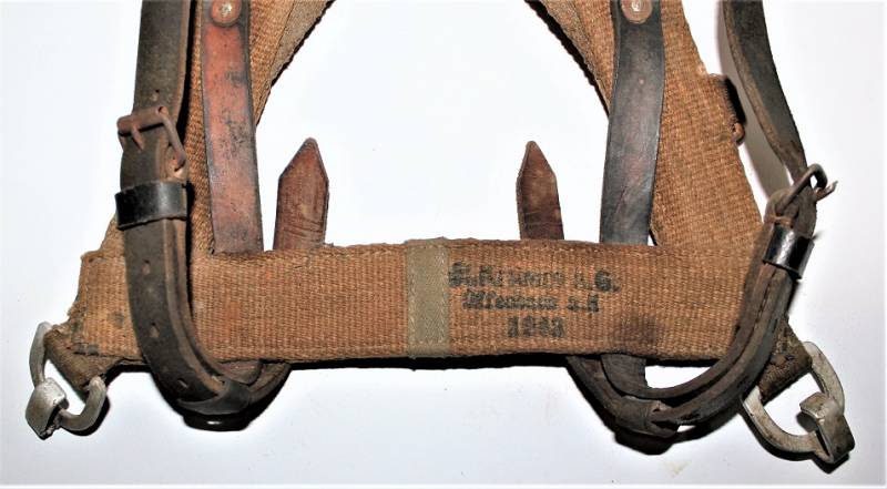 Bellissima riproduzione di basto in canapa con segni di usura, costruito con materiali originali dŽepoca, marcato con fabbricante e data.