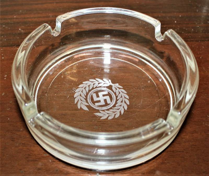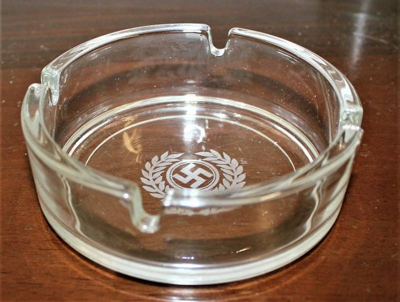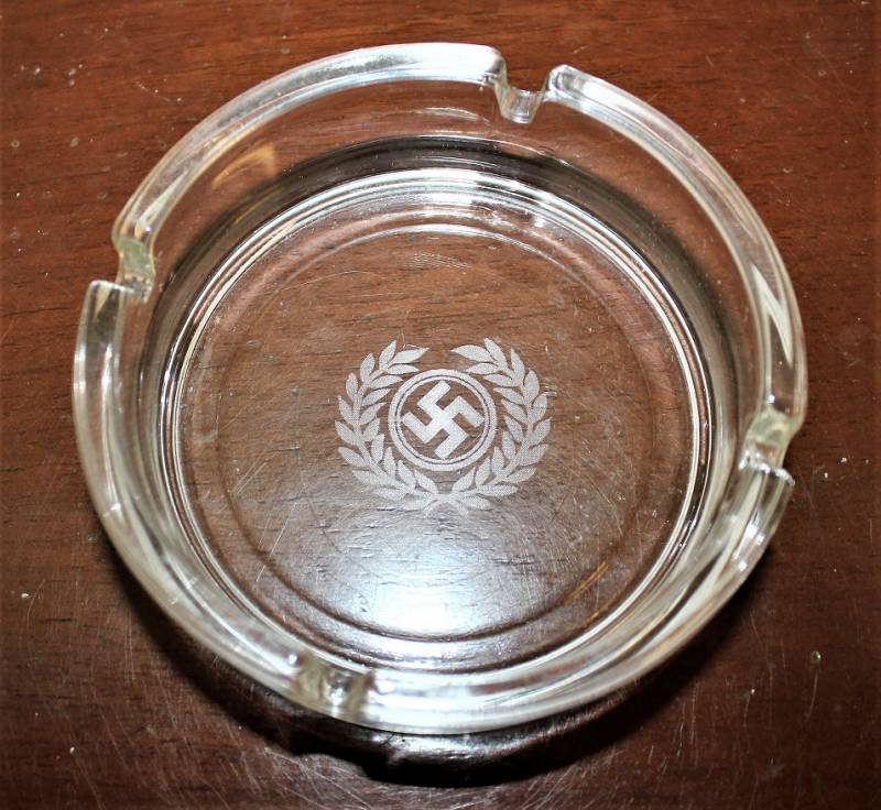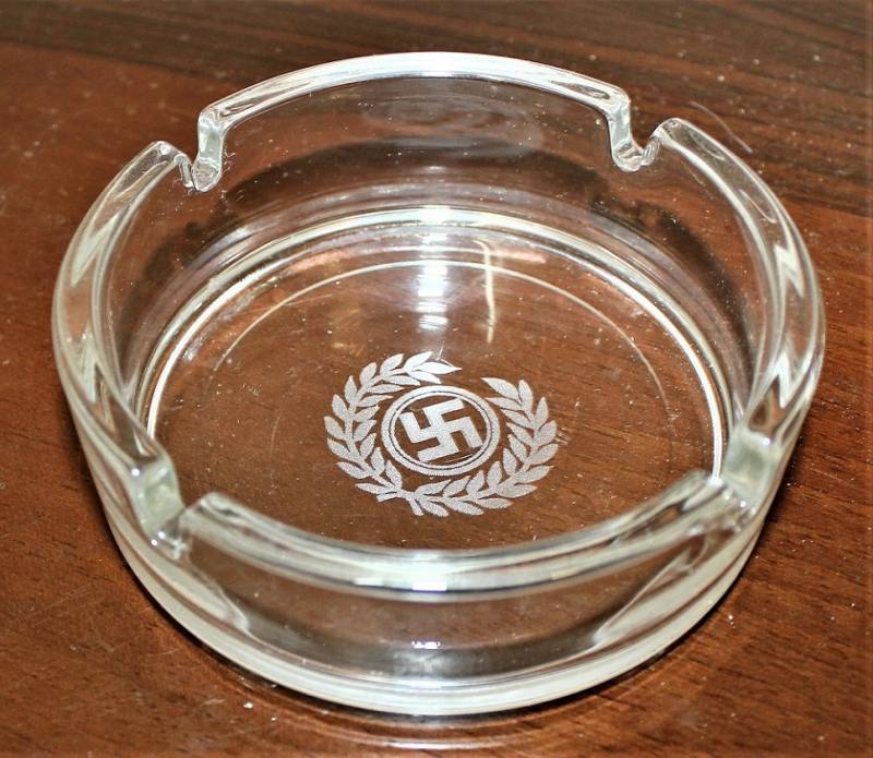 Bellissima copia di portacenere in cristallo con impressa svastica.