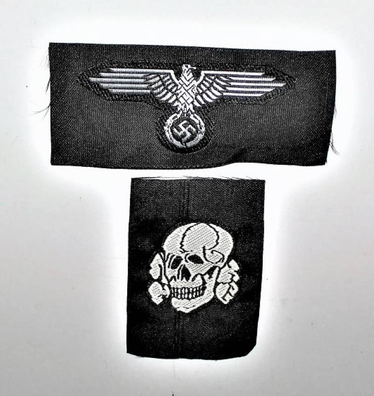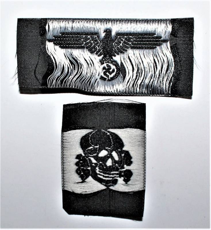 Coppia di fregi in BEVO aquila e teschio da berretto W.SS da Truppa.