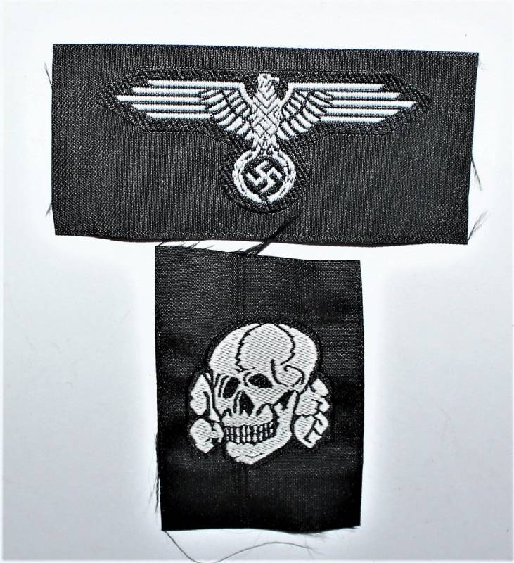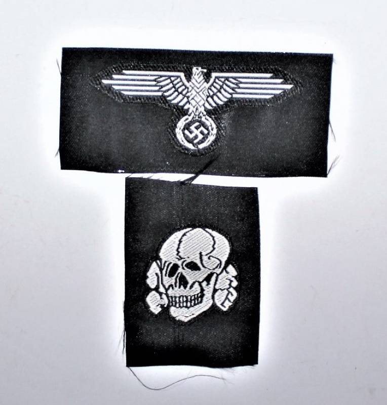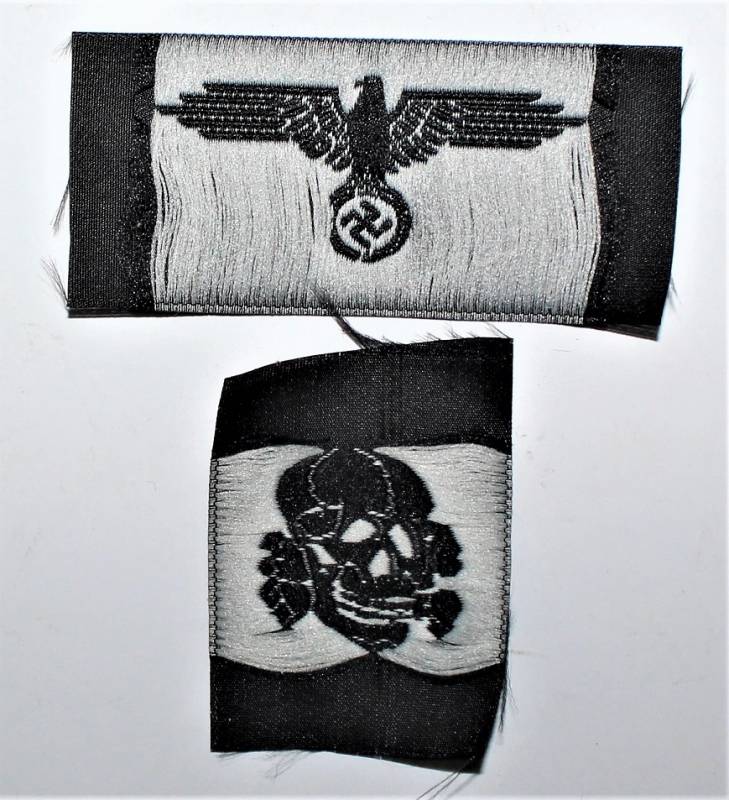 Coppia di fregi in BEVO aquila e teschio da berretto W.SS da Truppa.