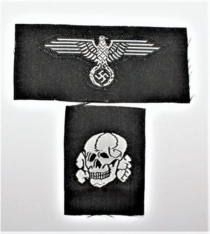Coppia di fregi in BEVO aquila e teschio da berretto W.SS da Truppa.