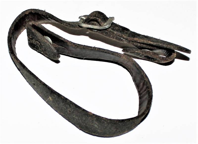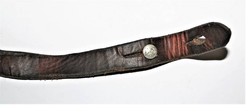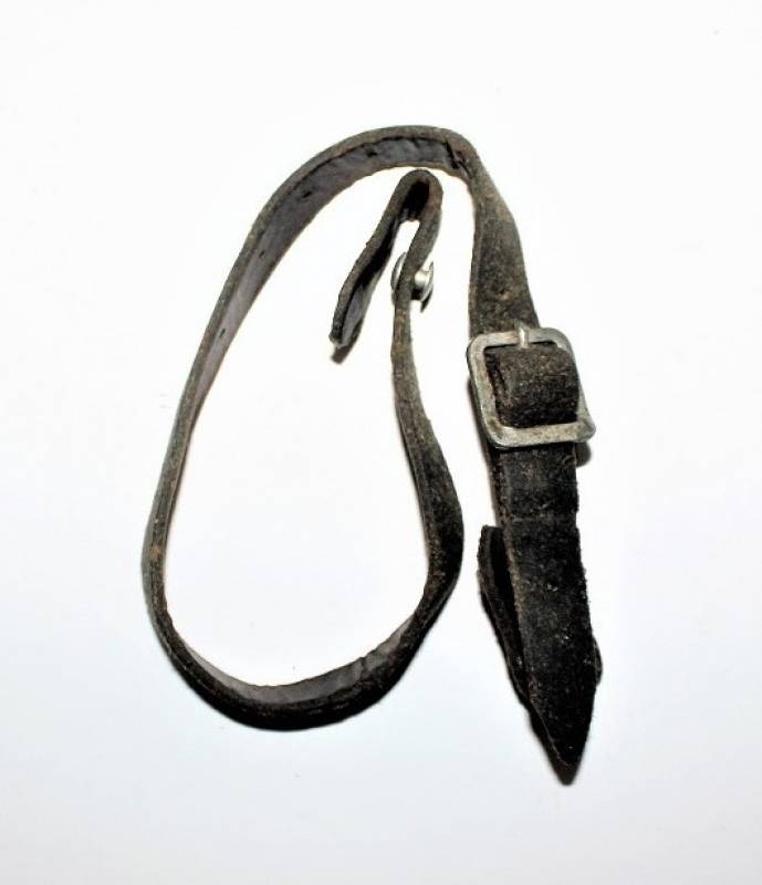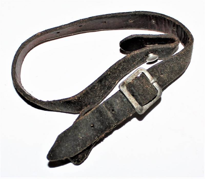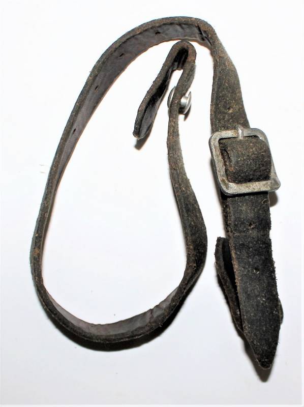 Bella copia di sottogola per elmetto, invecchiato e marcato con fabbricante e data.