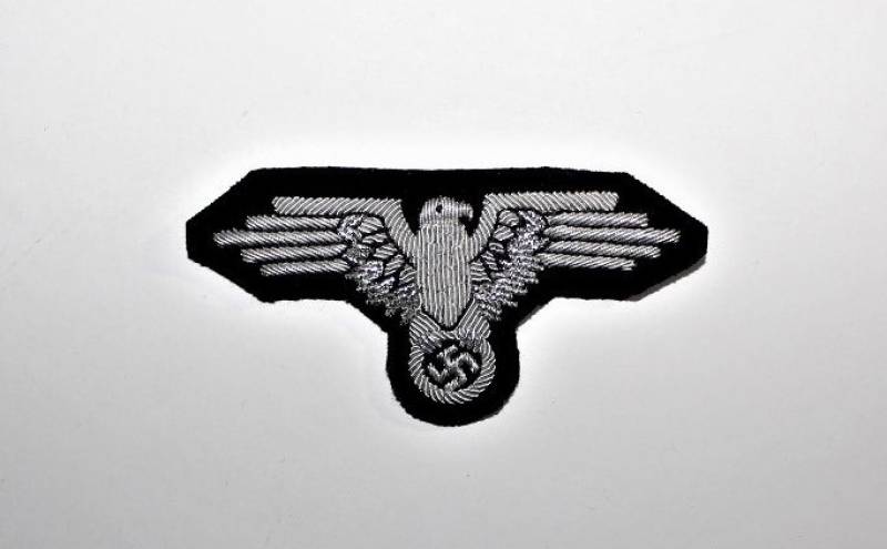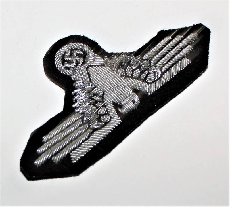 Bella copia di aquila da giacca ufficiale SS in filo di canottiglia argentata.