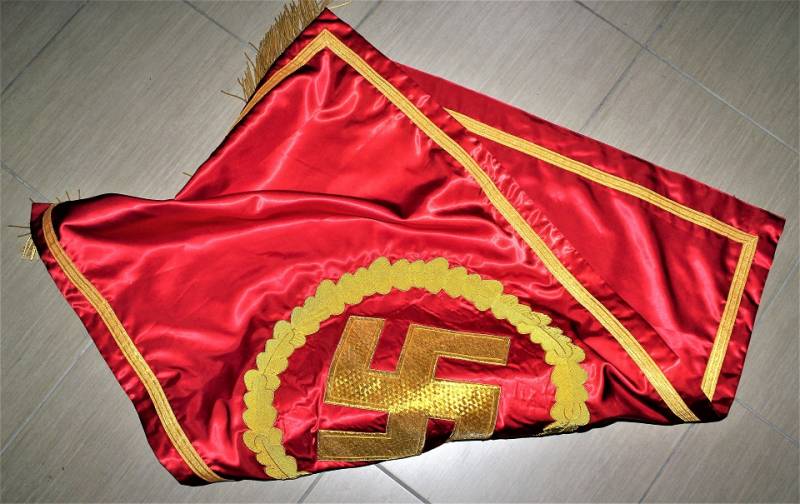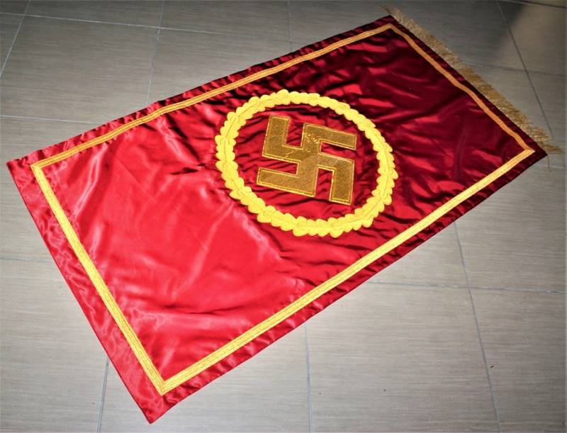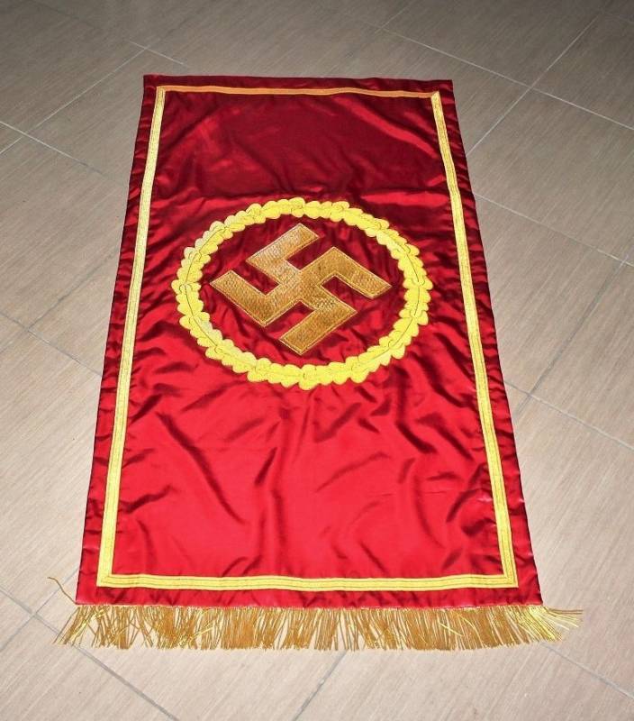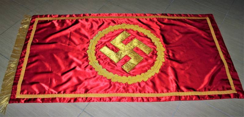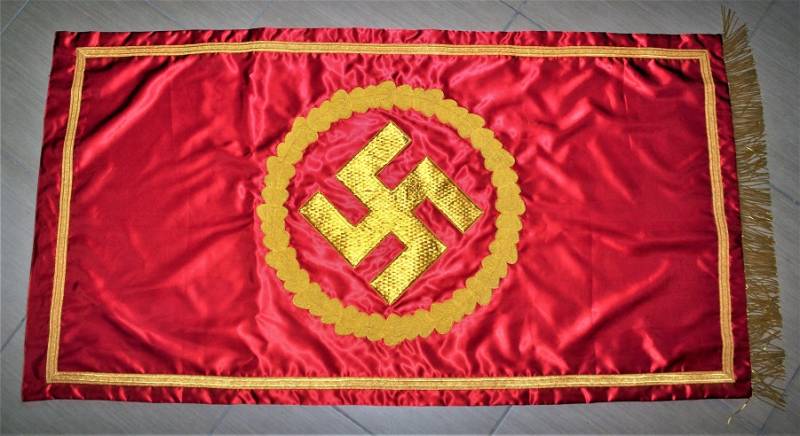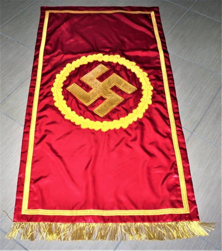 Bellissima copia di stendardo politico NSDAP in condizioni perfette, ricami in canottiglia dorata. Misure mt. 1,50x0,80.