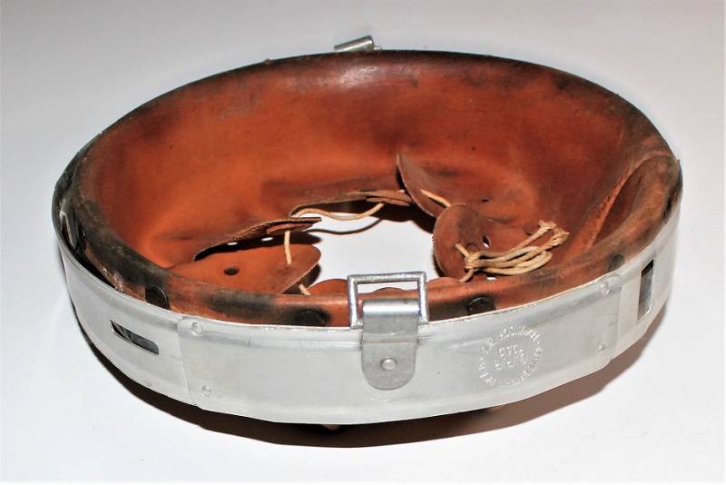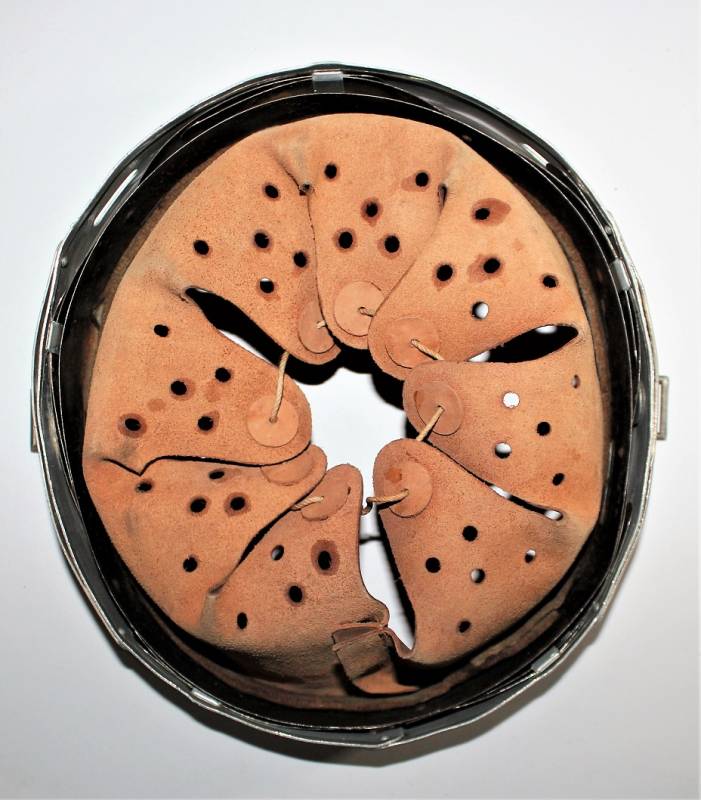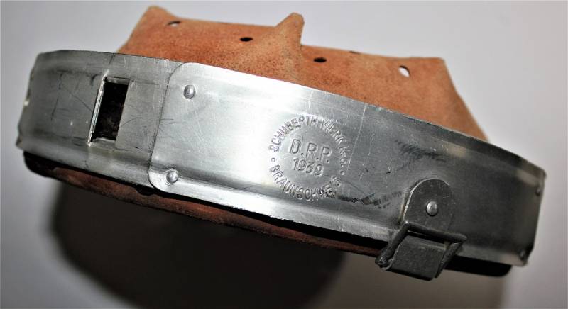 Ottima riproduzione di liner per elmetto M35, cerchione in alluminio con rinforzi tipico M35, marcato con taglia ferro 68 e nome del fabbricante con data 1939, taglia pelle 60.