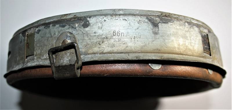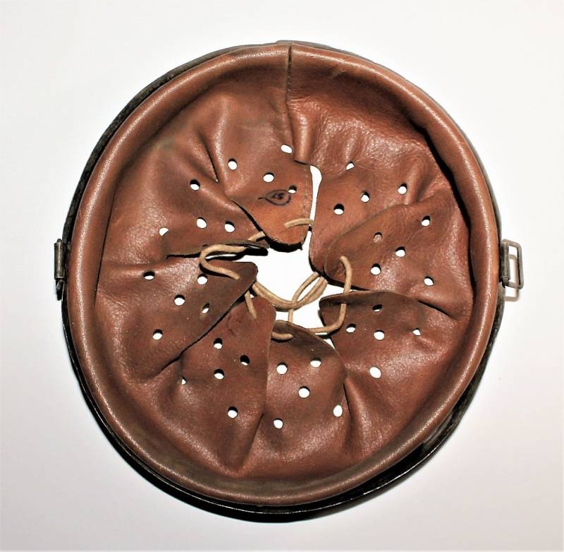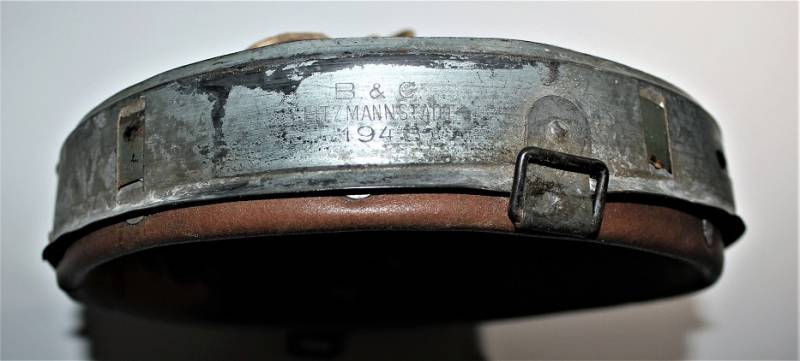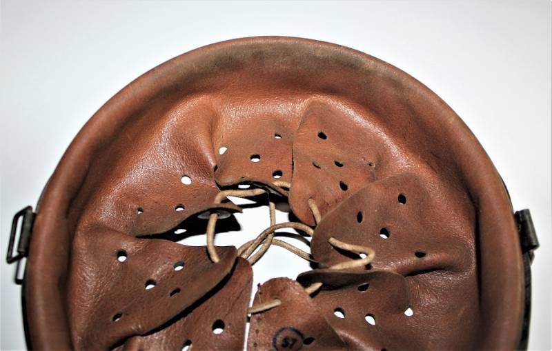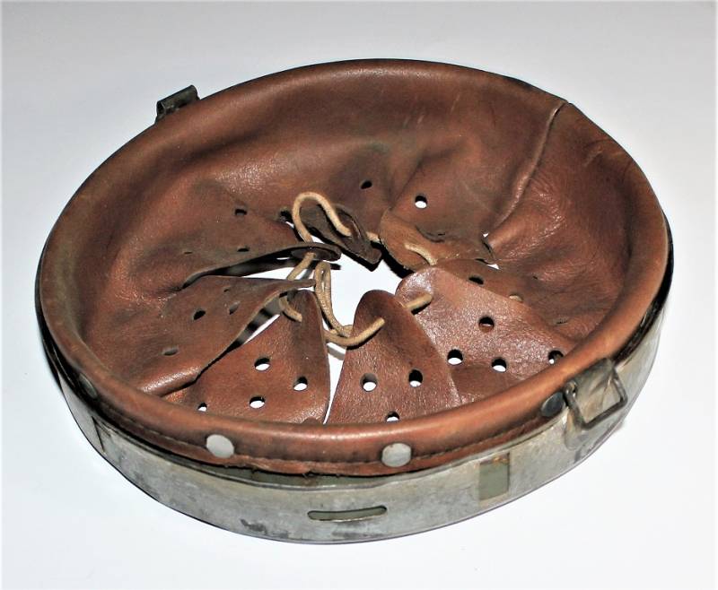 Ottima riproduzione di liner per elmetto M40-42, cerchione e contro cerchione zincati originali dŽepoca, solo la pelle è una riproduzione, cerchione marcato con taglia ferro 66 e nome del fabbricante con data 1943, taglia pelle 57.