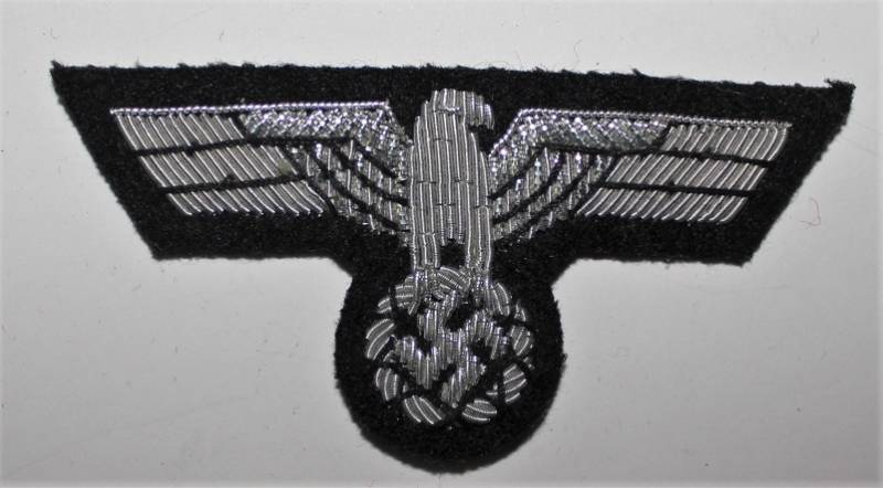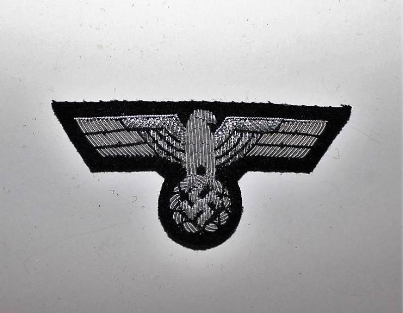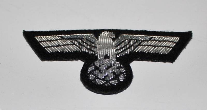 Aquila in canottiglia per berretto da campo M43 WH-PZ, su fondo nero.