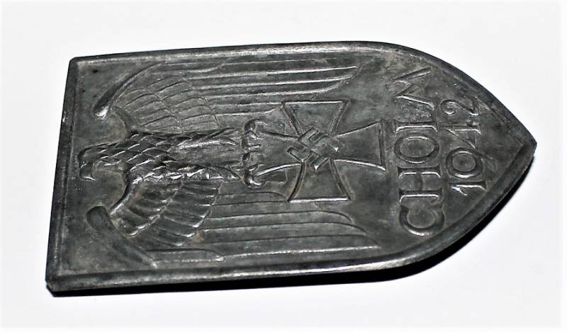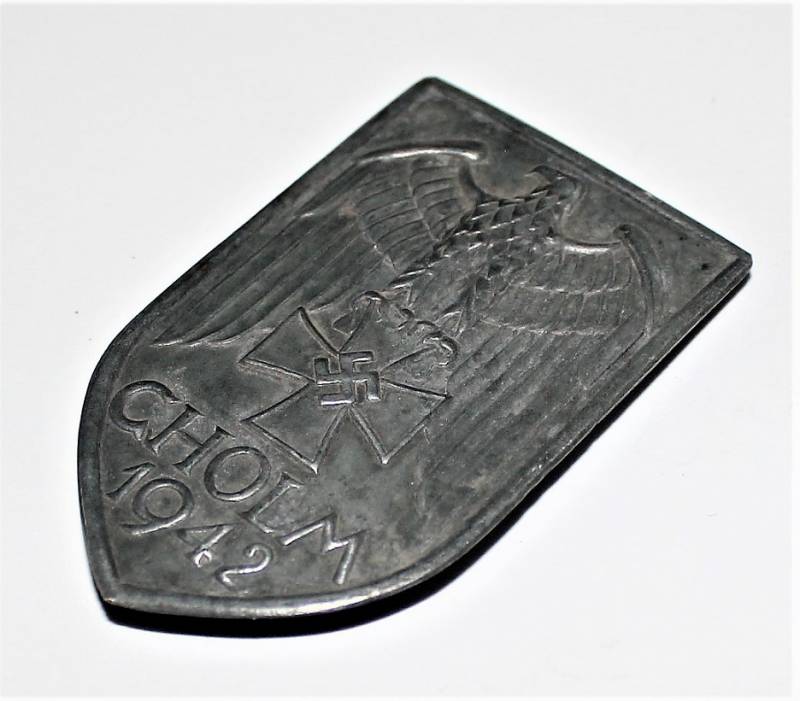 Bella riproduzione di distintivo per giacca CHOLM invecchiato con patina del tempo.