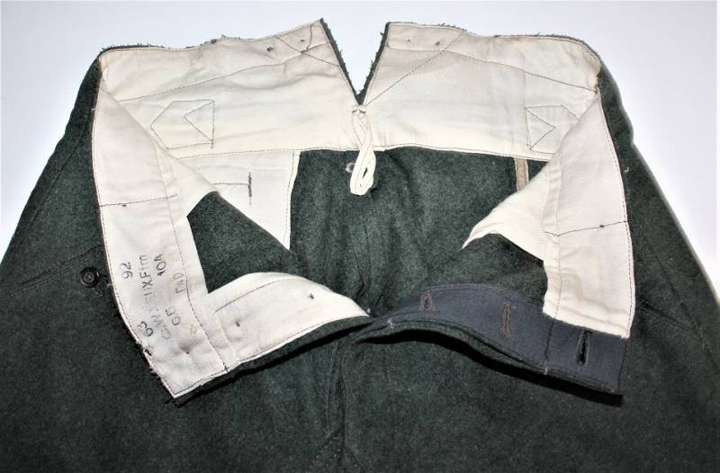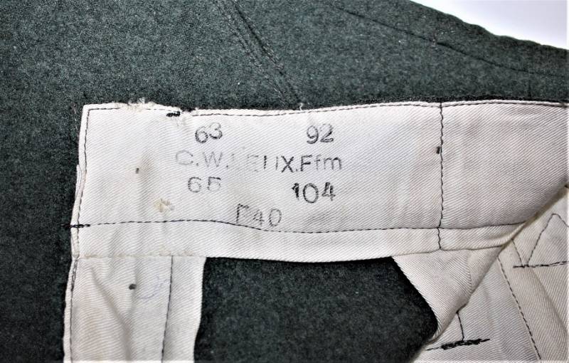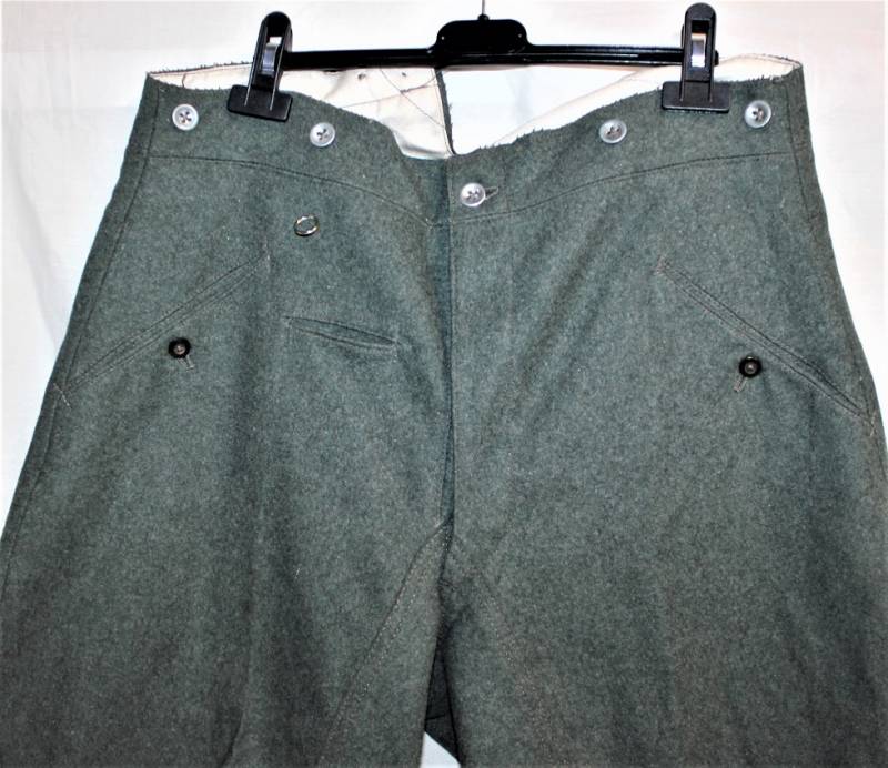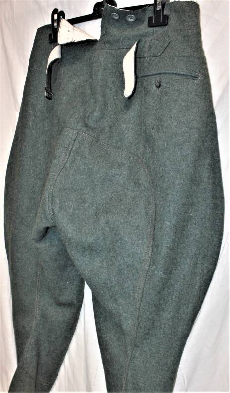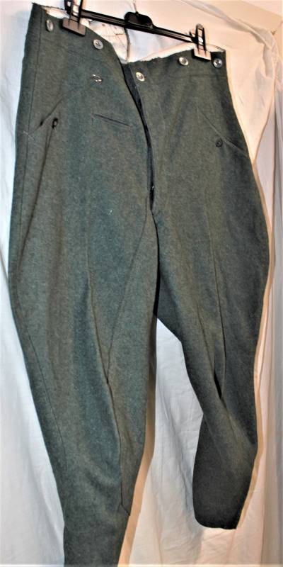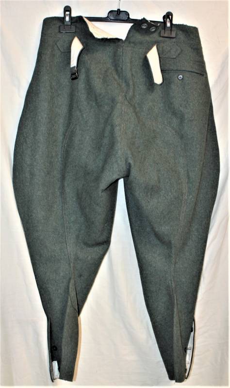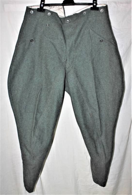 Stupendi pantaloni da Ufficiale a sbuffo WH-SS in condizioni perfette mai usati nuovi di magazzino, nati in stoffa di lana feldgrau, completi in ogni sua parte, marcati internamente con numeri di taglia e nome fabbricante. Taglia circa 48. Originale 100% WWII periodo.