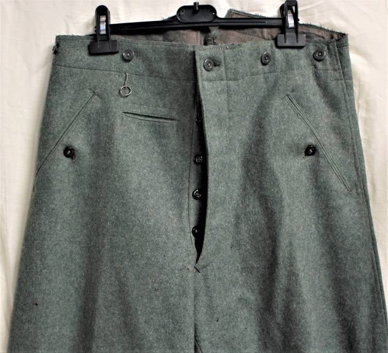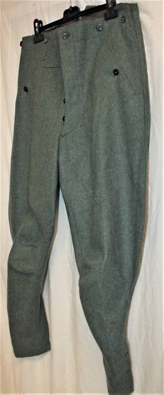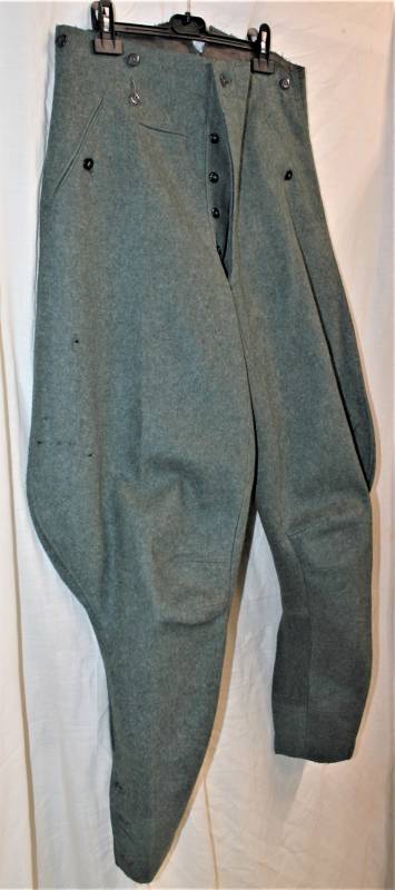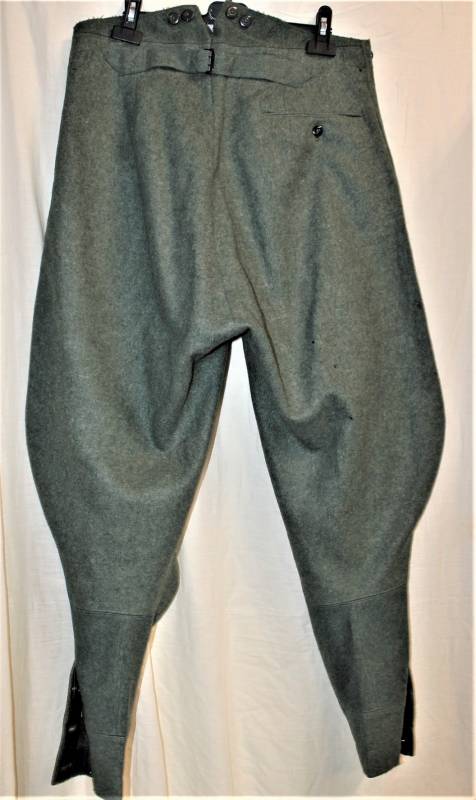 Stupendi pantaloni da Ufficiale a sbuffo WH-SS in condizioni perfette mai usati nuovi di magazzino, nati in stoffa di lana feldgrau, completi in ogni sua parte, solo qualche piccolo buchino di tarma, marcati internamente con numeri di taglia e anno 1941. Taglia circa 48. Originale 100% WWII periodo.