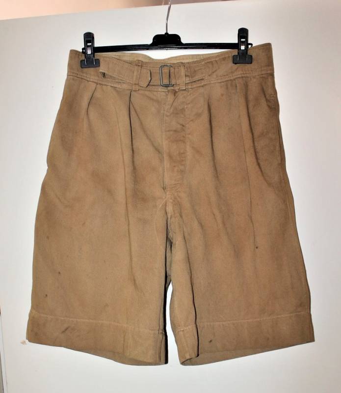 Pantaloni corti tropicali DAK della LW in buone condizioni, solo leggera patina del tempo e dellŽuso, qualche piccola macchia, ma senza buchi o strappi, cuciture perfette, marcati internamente con nome fabbricante, taglie e L.B.A.41 e taglia circa 48. Originale 100% WWII periodo.