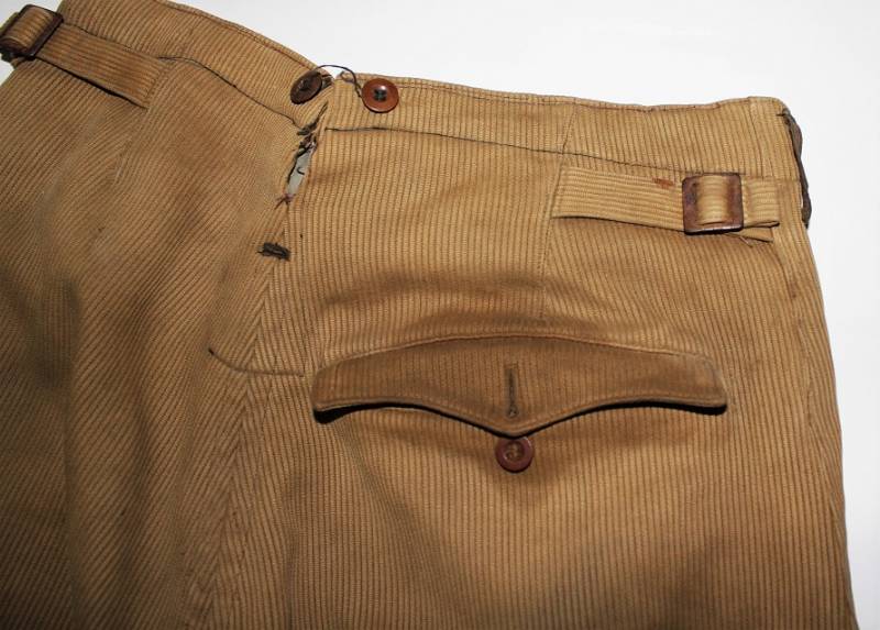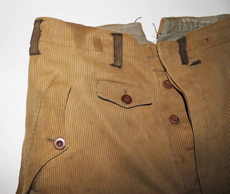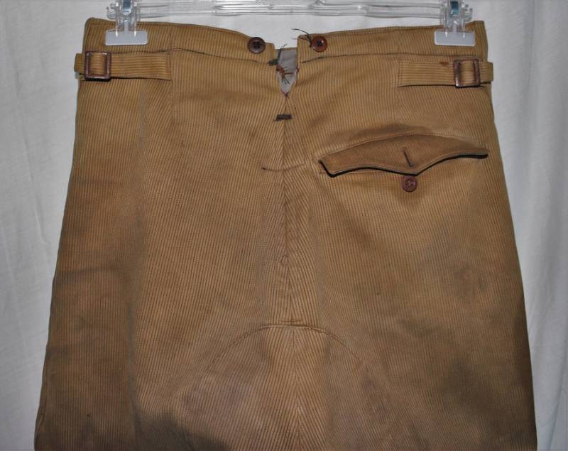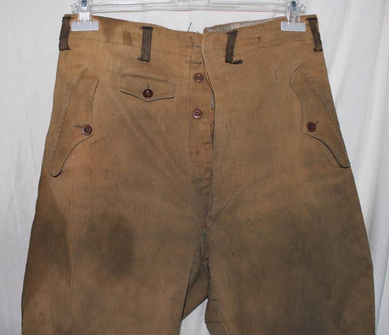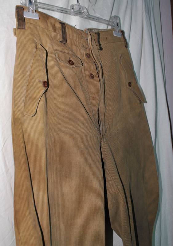 Pantaloni da ufficiale tropicali DAK in tipica stoffa tipo vellutino, condizioni usati ma buoni, completi, senza buchi, strappi o riparazioni, taglia piccola circa 46. Originale 100% WWII periodo.