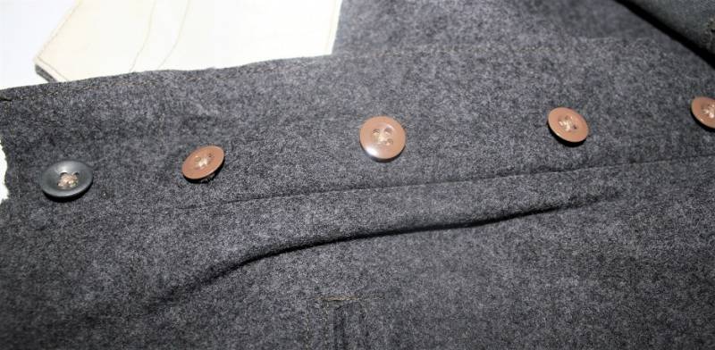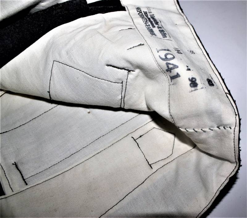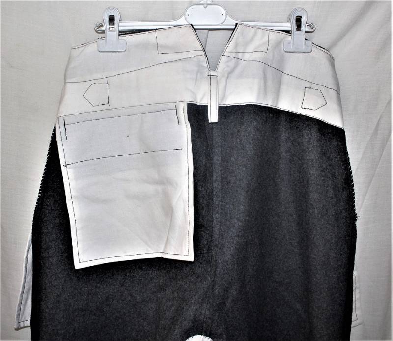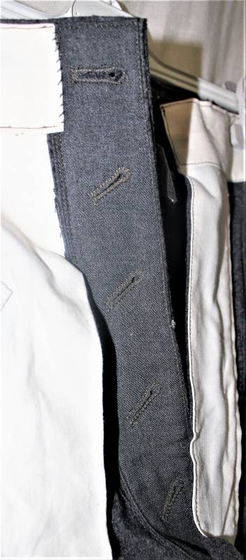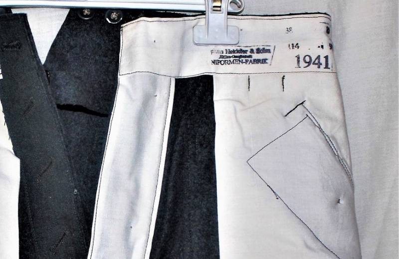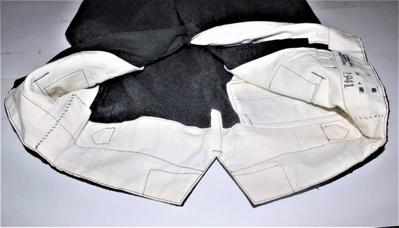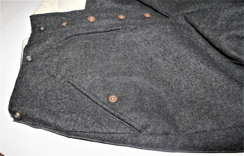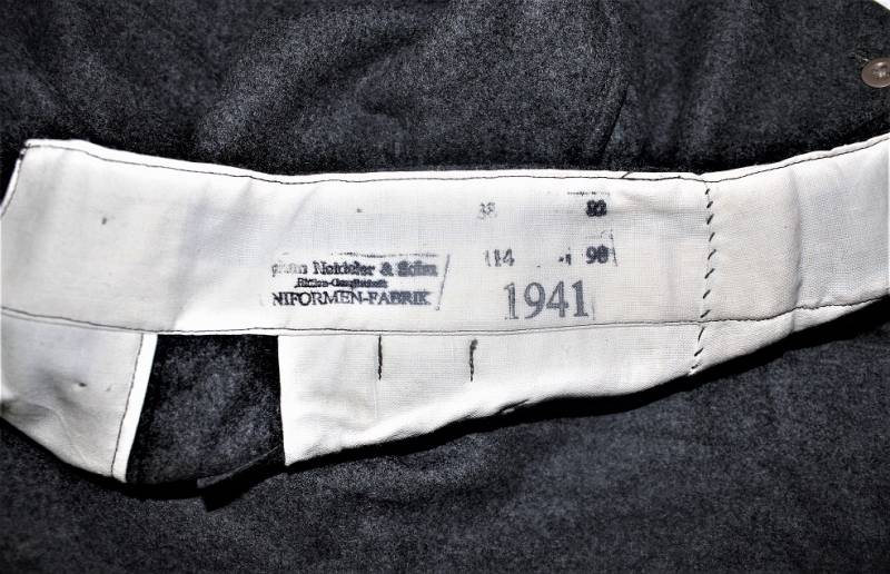 Pantaloni in panno di lana mod.36 LW, in colorazione grigio-blu, condizioni perfette, fondo di magazzino, mai usati, marcati internamente con fabbricante, numeri delle taglie e data 1941. Taglia circa 48. Originale 100% WWII periodo.