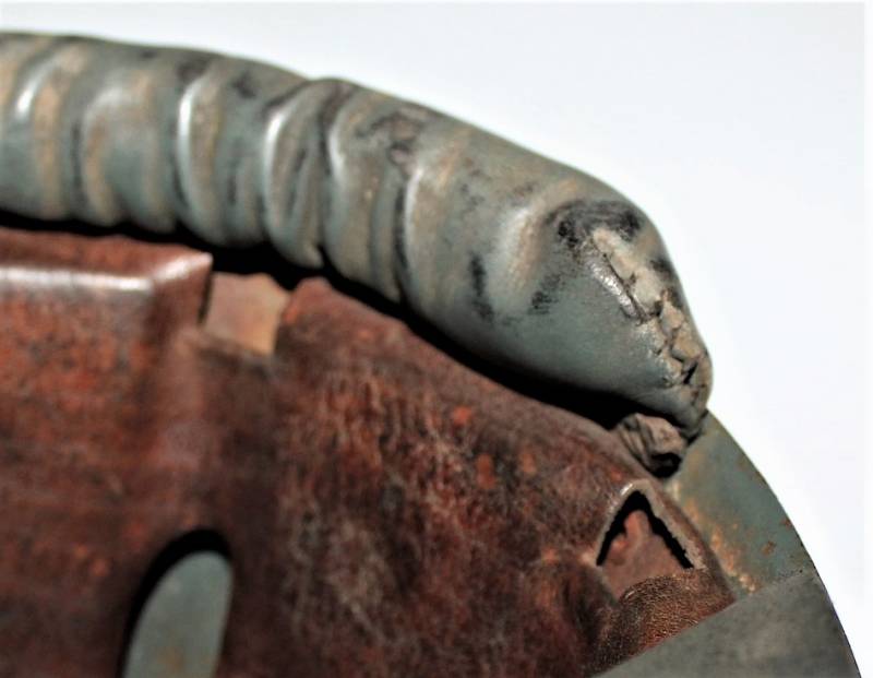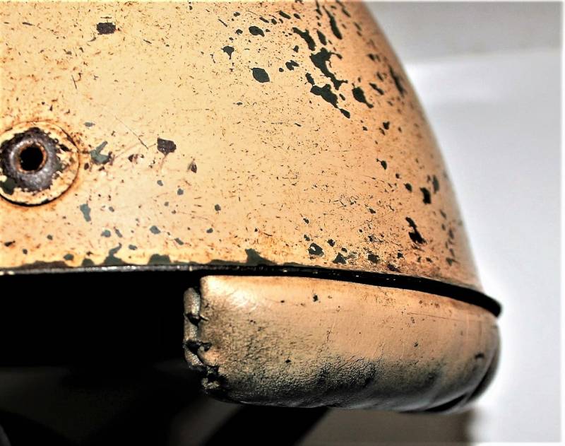 Elmetto mod.42 da paracadutista in colorazione mimetica tropicale D.A.K. in ottime condizioni, non restaurato o riparato, completo in tutte le sue parti, interno e sottogola mai smontati e non lesionati, verniciatura mimetica gialla al 70/80% il tutto con leggera patina del tempo e dellŽuso. Marcato con taglia 57. Originale 100% WWII periodo.