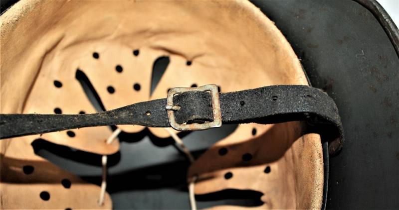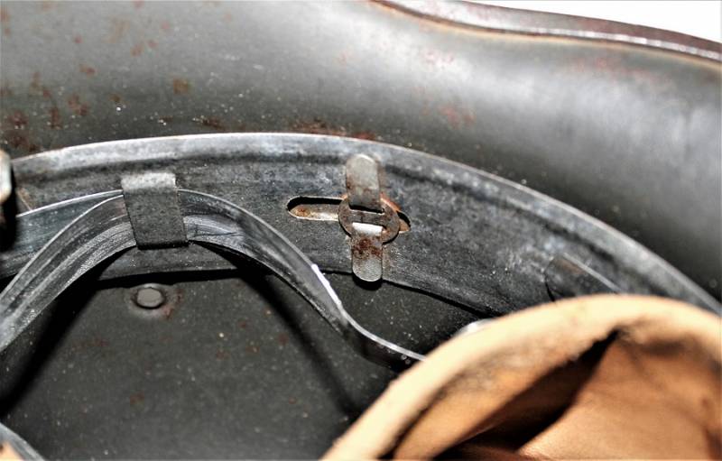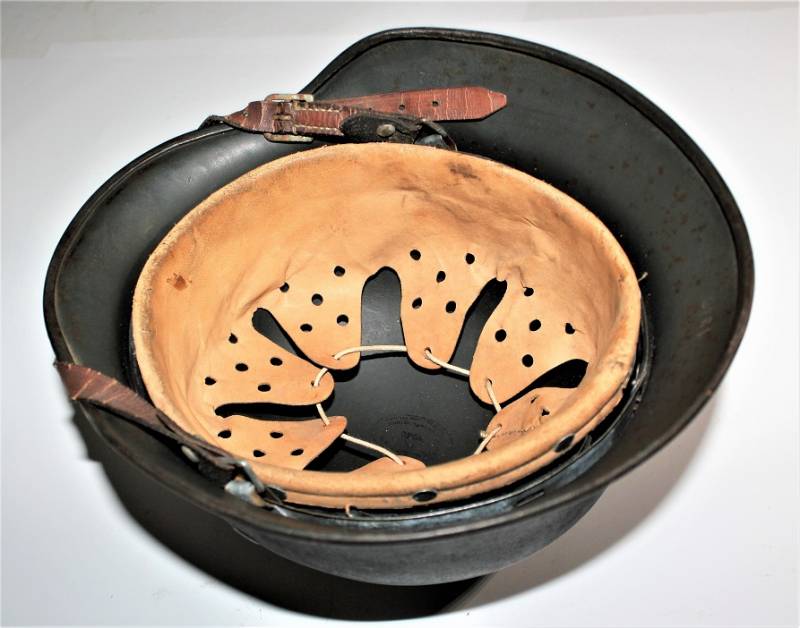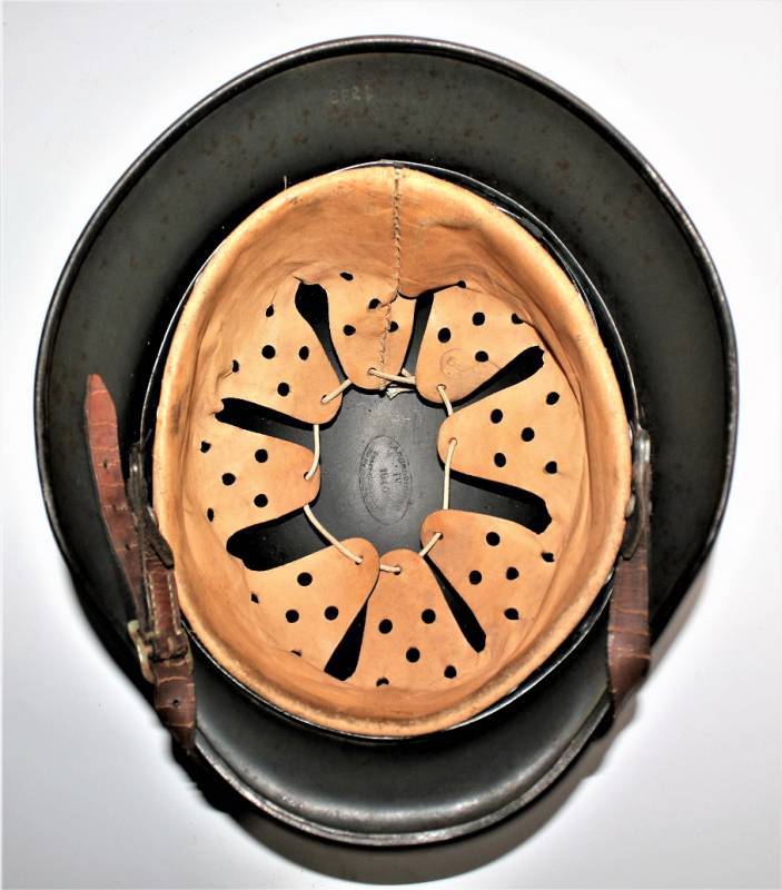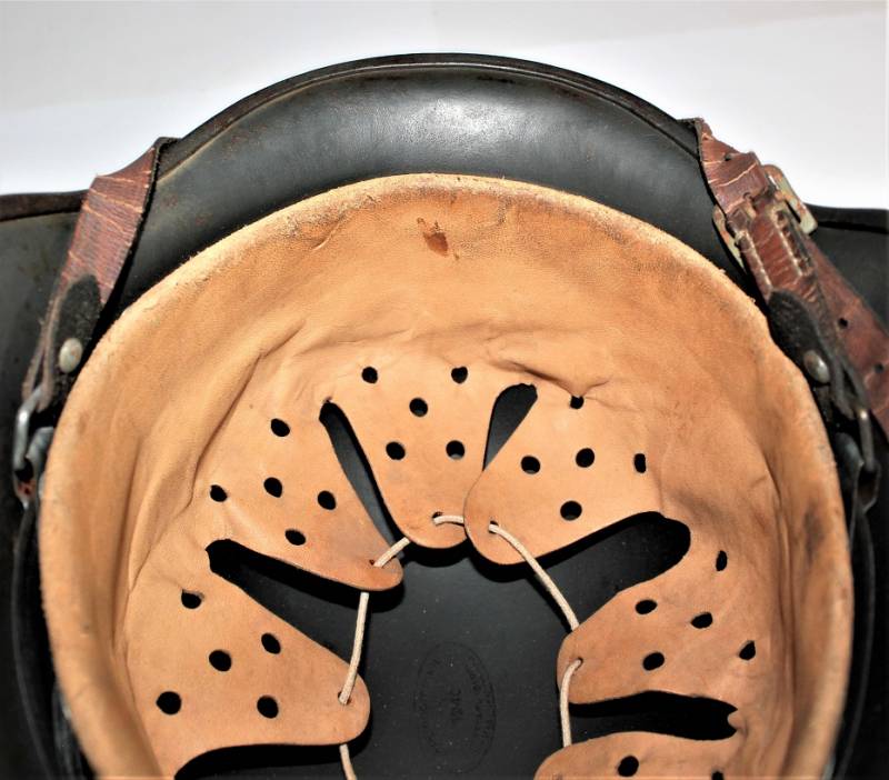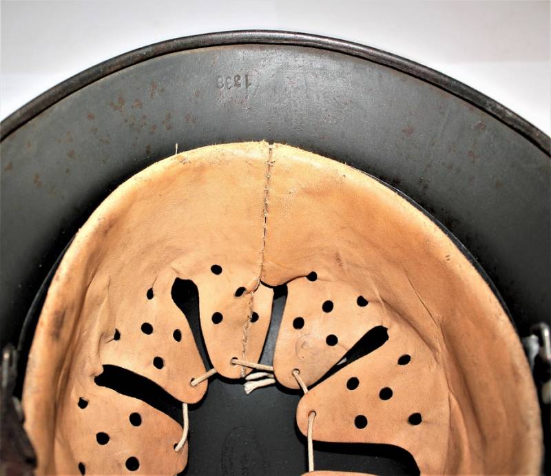 AllŽinterno dellŽelmo sulla calotta è ben visibile il timbro ovale dŽaccettazione con data 1940, ferro marcato con codice fabbricante ET62 e numero di lotto, taglia della pelle 55. Originale 100% WWII periodo.
