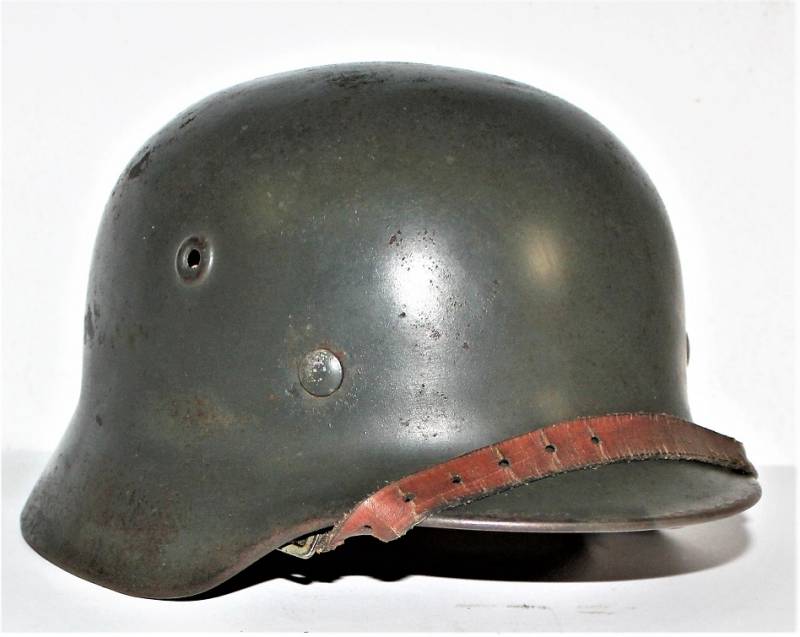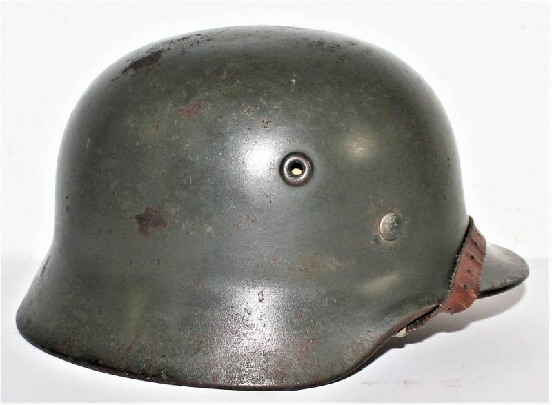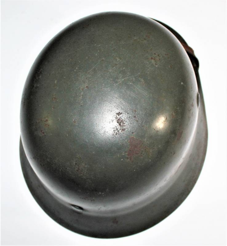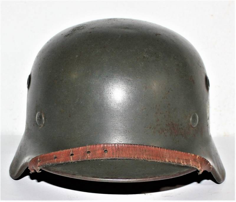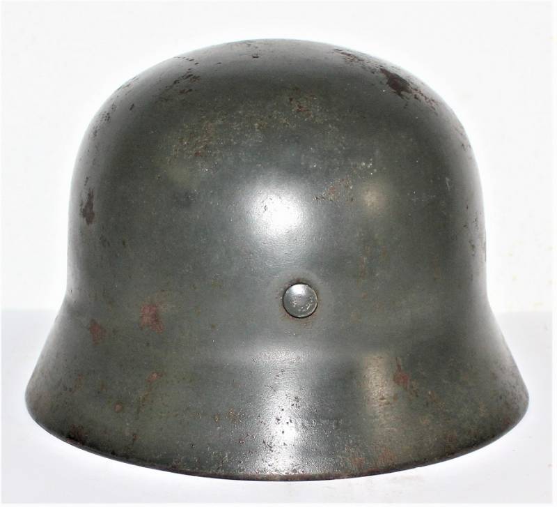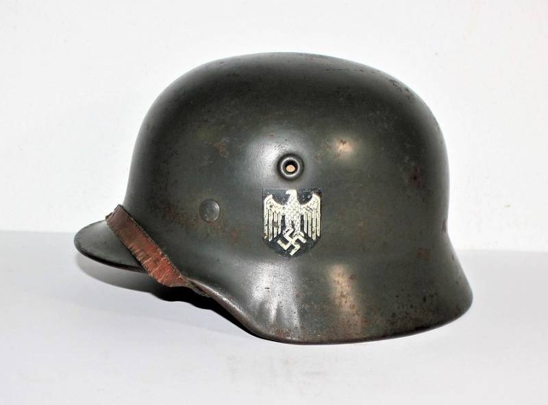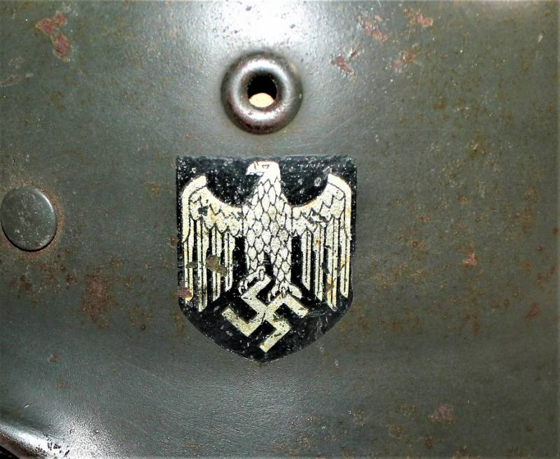 Elmetto M40 monofregio della WH nato in colorazione verde feldgrau con vernice al 95%, ottime condizioni con leggera patina del tempo e dellŽuso, non restaurato o riparato, completo in ogni sua parte, interno e sottogola mai smontati, pelle in ottime condizioni non lesionata solo patinata dallŽuso, sul sottogola sŽintravede il nome del fabbricante e la data 1940, decalcomania in ottime condizioni al 90% leggermente patinata dal tempo.
