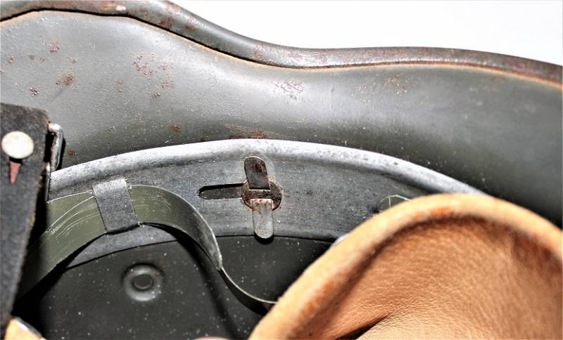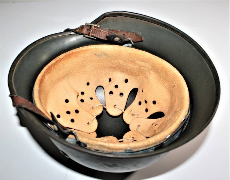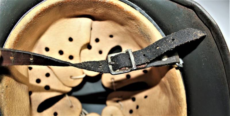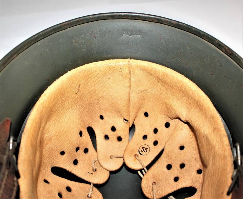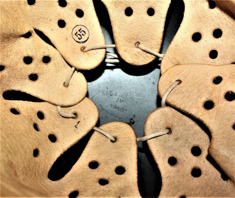 AllŽinterno dellŽelmo sulla calotta è ben visibile il timbro ovale dŽaccettazione con data 1940, ferro marcato con codice fabbricante Q62 e numero di lotto, taglia della pelle 55. Originale 100% WWII periodo.