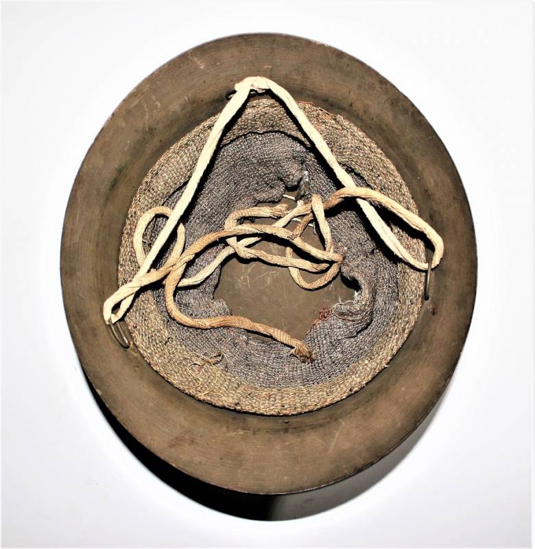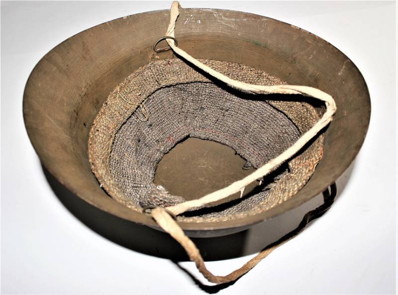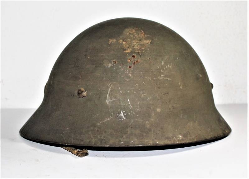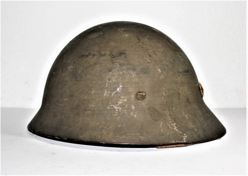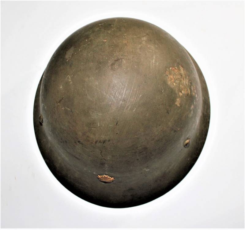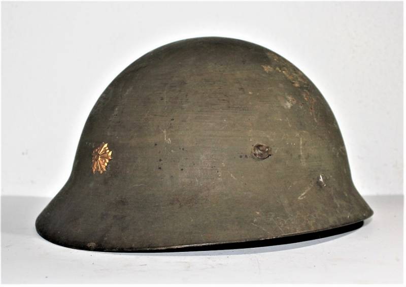Elmetto Giapponese mod. 1920-30 della Protezione Civile con fregio frontale in metallo dorato, condizioni ottime, non restaurato o riparato, completo in ogni sua parte, vernice al 90%. Originale 100% WWII periodo.