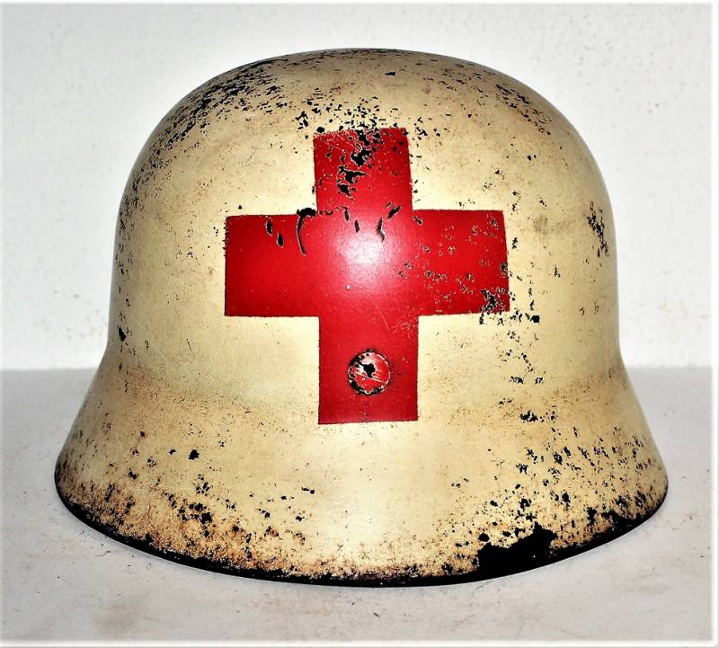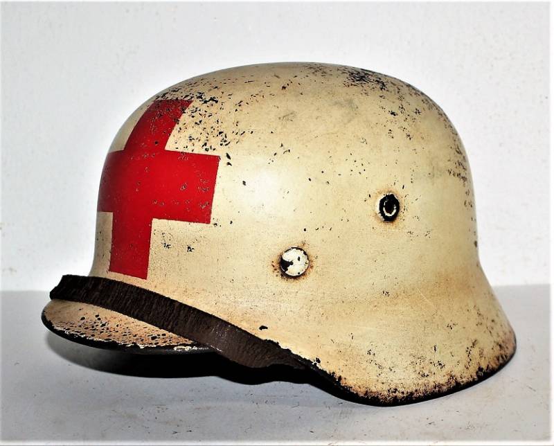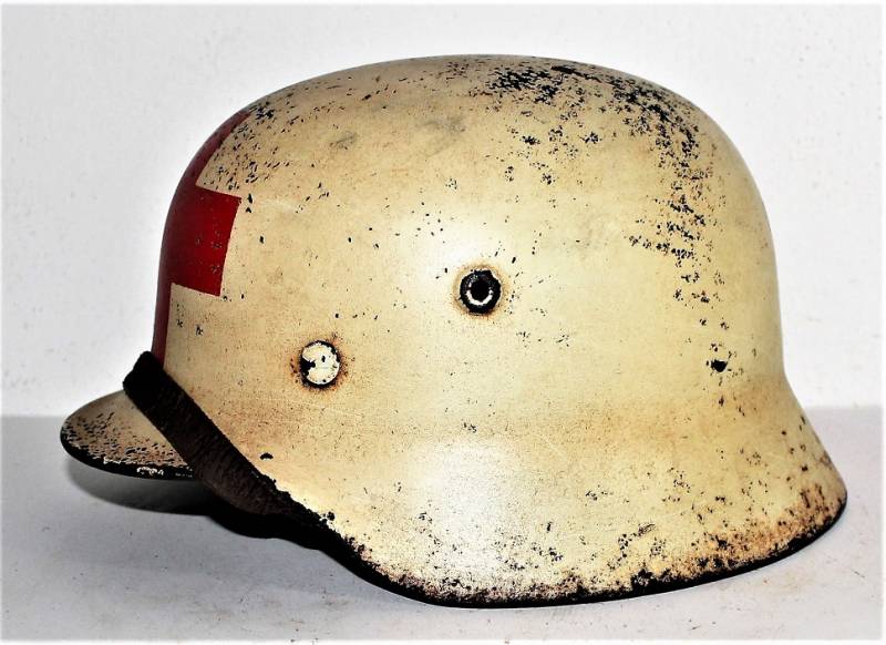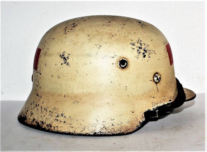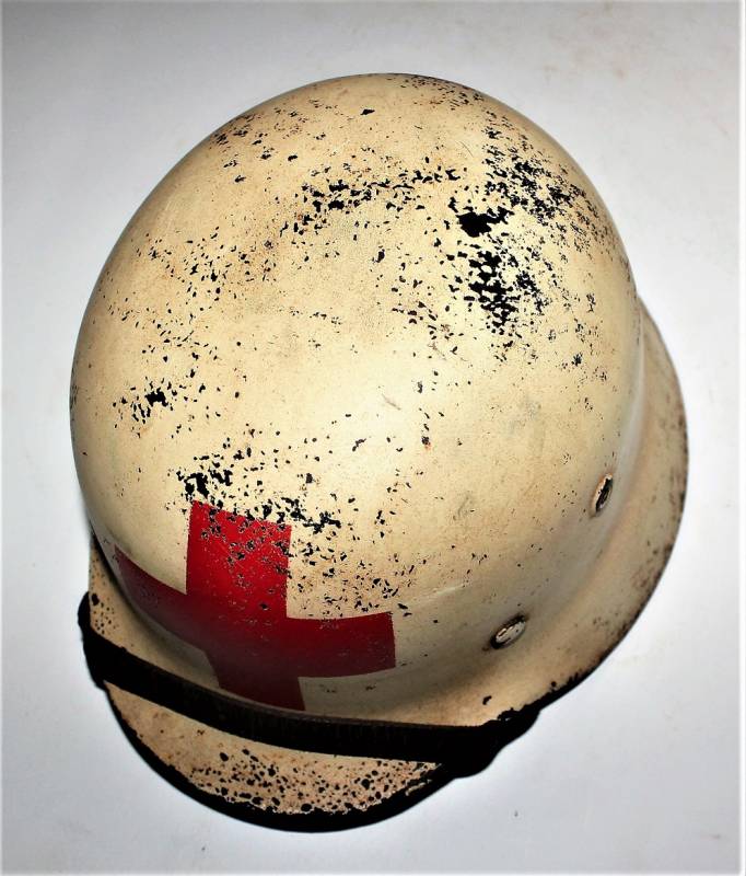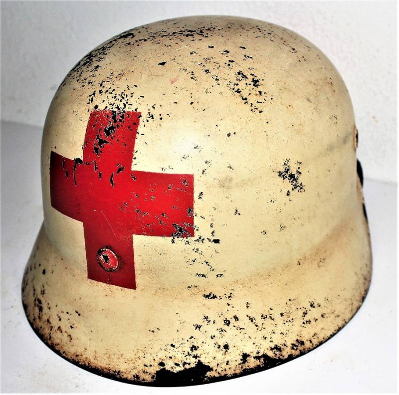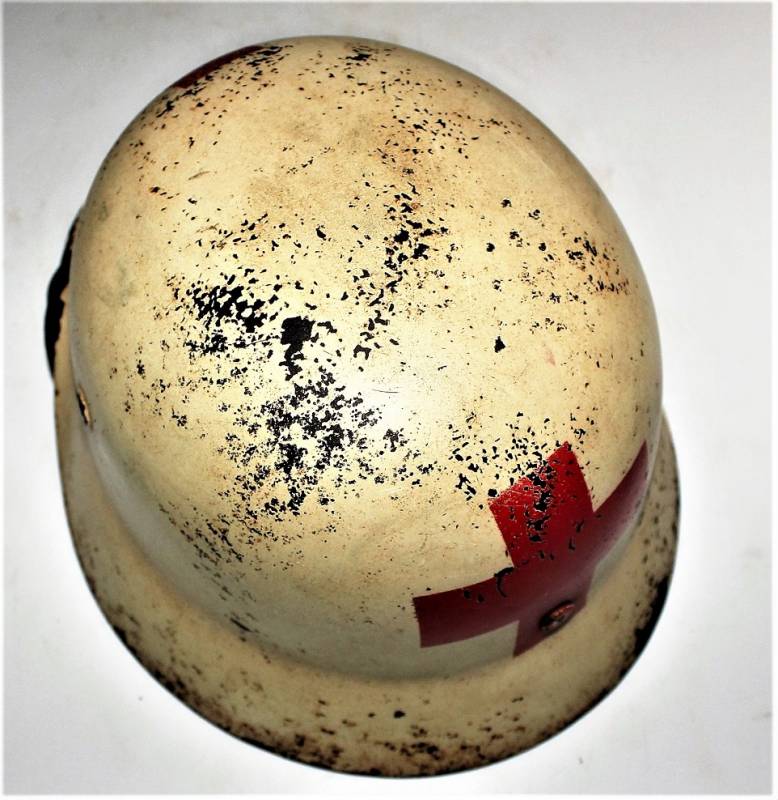 Elmetto M40 Croce Rossa molto bello e raro, con leggeri segni del tempo e dellŽuso, non restaurato, riparato e mai smontato, completo in tutte le sue parti, verniciatura bianca ingiallita dal tempo allŽ85% circa. Taglia del ferro 64, pelle dellŽinterno ottima, non lesionata, taglia 56. Sottogola marcato con nome del fabbricante e data 1941. Originale 100% WWII periodo.