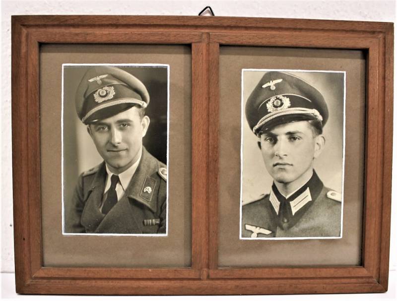 Foto di due fratelli Ufficiali della WH incorniciati in unŽunica cornice in legno, il tutto in condizioni perfette quasi pari al nuovo. Misure circa cm 29x21. Originale 100% WWII periodo.