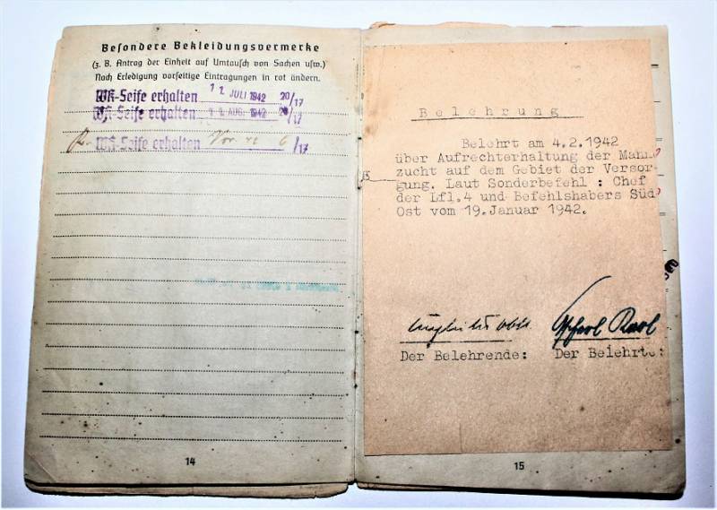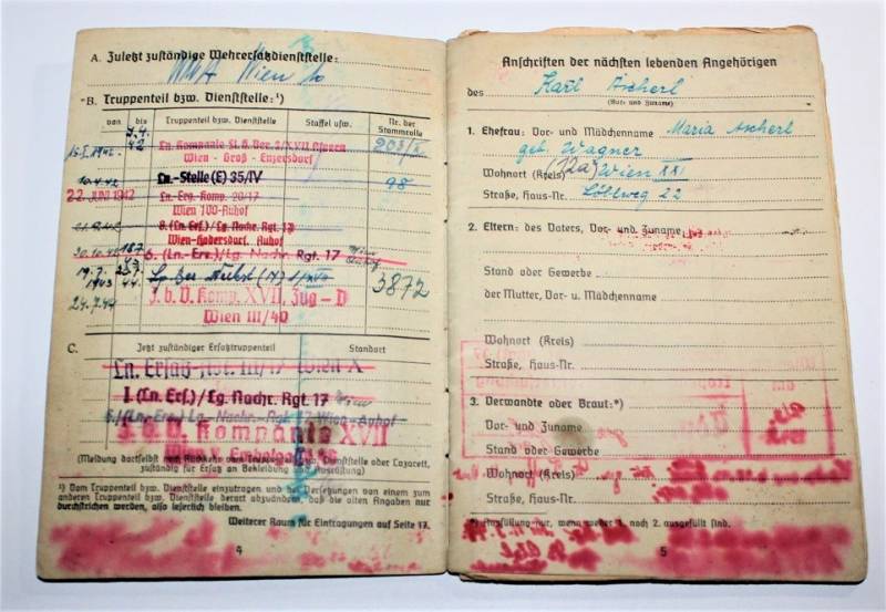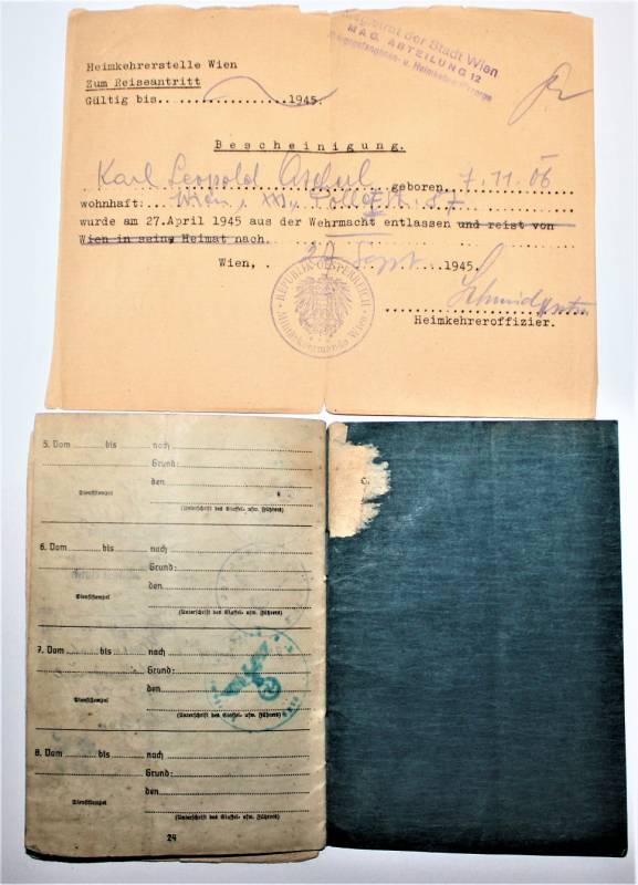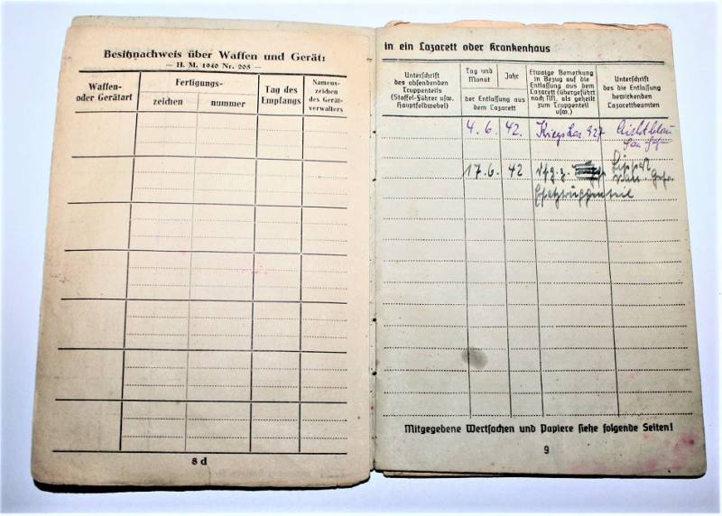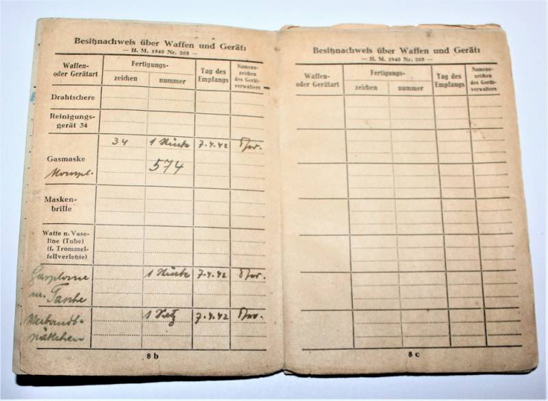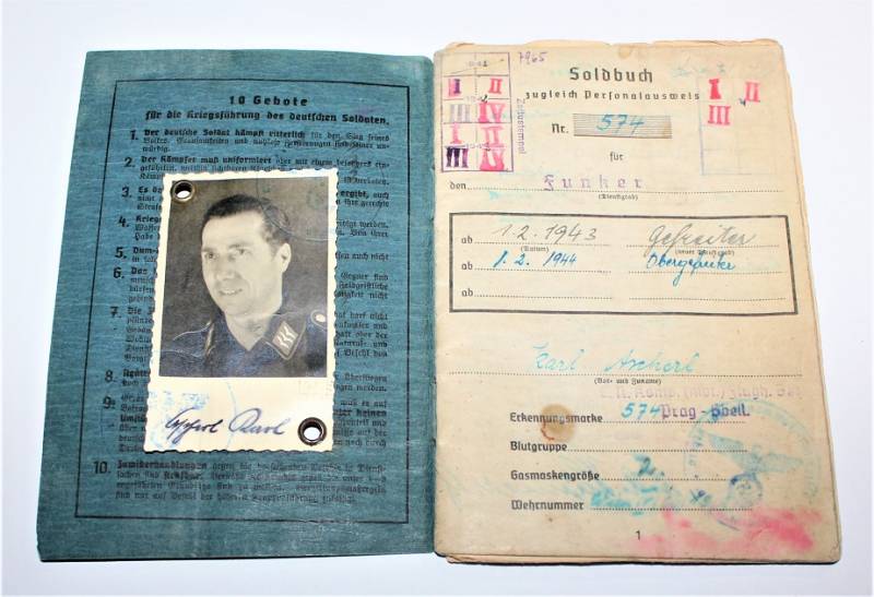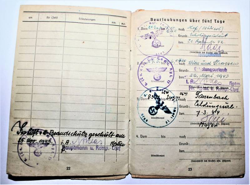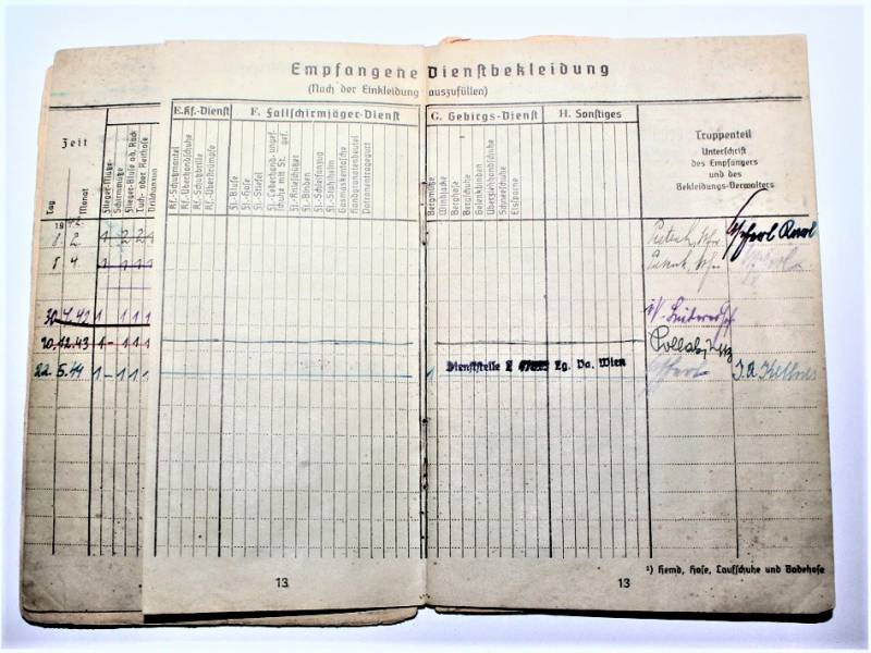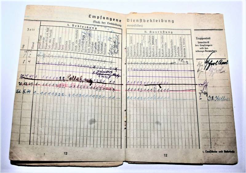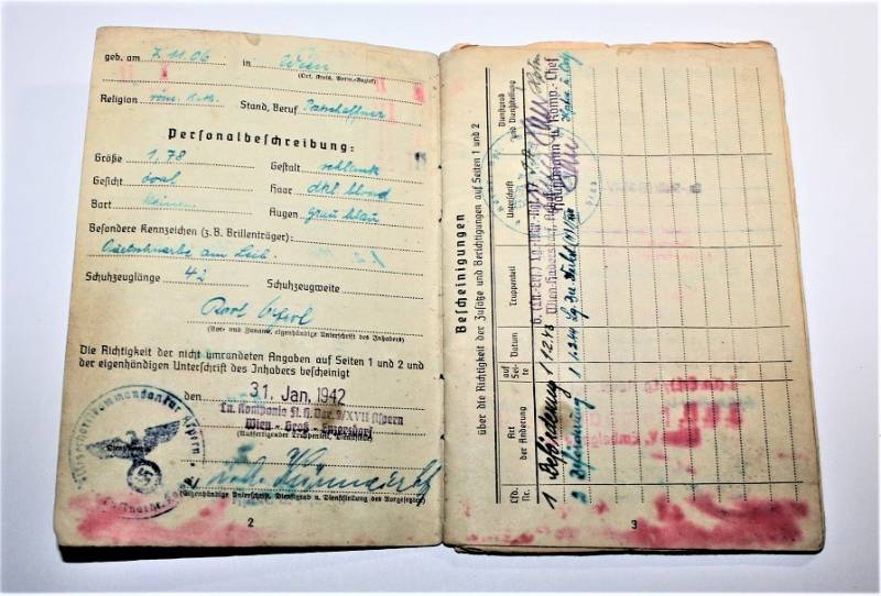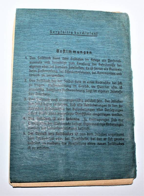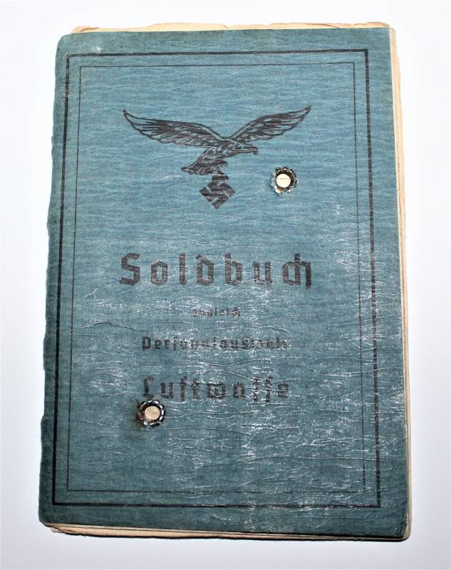 Soldbuch di un soldato della Luftwaffe arruolato nel Gennaio 1942 congedato nellŽAprile 1945, condizioni buone e completo di tutte le pagine, solo patina del tempo e delŽuso. Originale 100% WWII periodo.