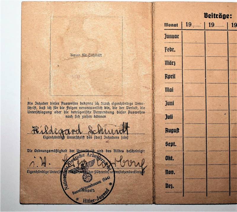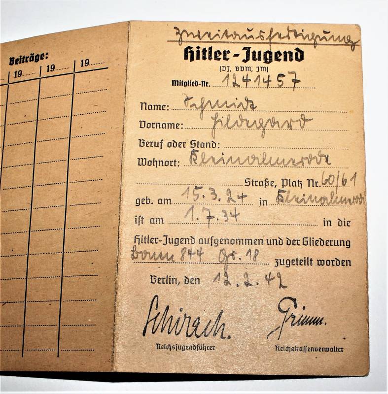 LIBRETTO-PASS MEMBRI HITLER JUGEND