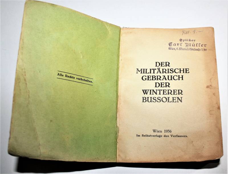Libro-manuale dŽistruzioni per bussola mod.WINTERER, edizione stampata a Vienna nel 1936, condizione buone ma usato, con patina del tempo.