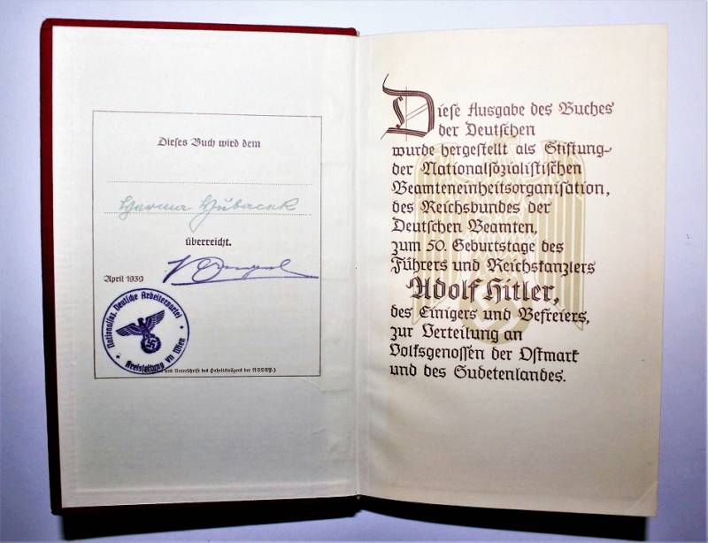 Questa copia è stata pubblicata nel 1939 dalla Casa Editrice centrale del NSDAP a Monaco di Baviera per il 50° compleanno do A.Hitler pubblicata in edizione limitata in versione lusso.