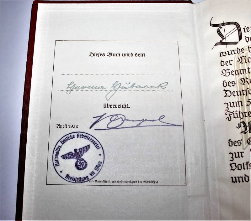 La versione di questo libro è nominativa, firmata e marcata con timbro d´accettazione Politico NSDAP Aprile 1939 in Vienna.
