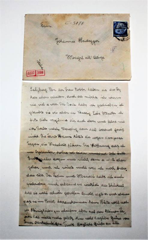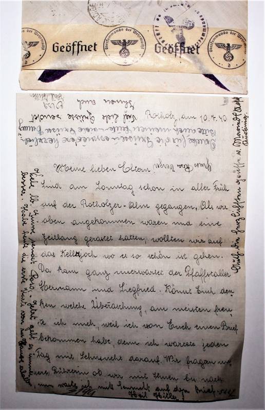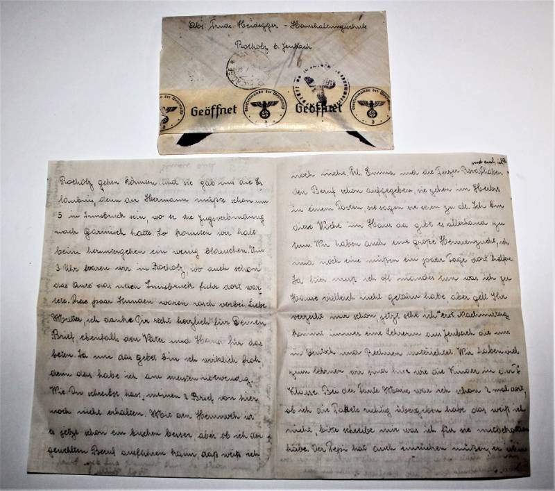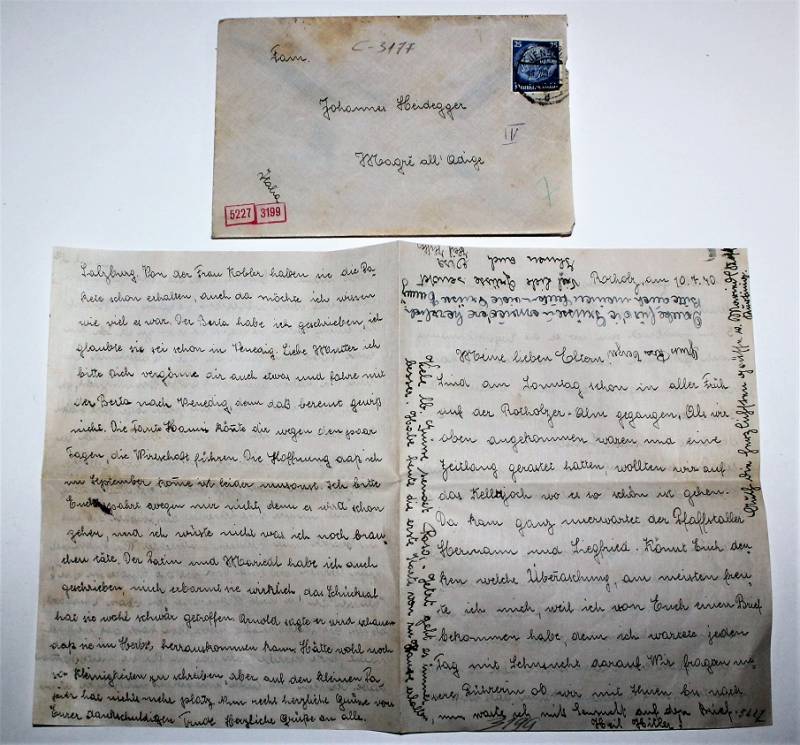 Busta e lettera tedesca affrancata e timbrata dal Comando della WH in buone condizioni, probabilmente scritta da un soldato al Fronte per la famiglia.