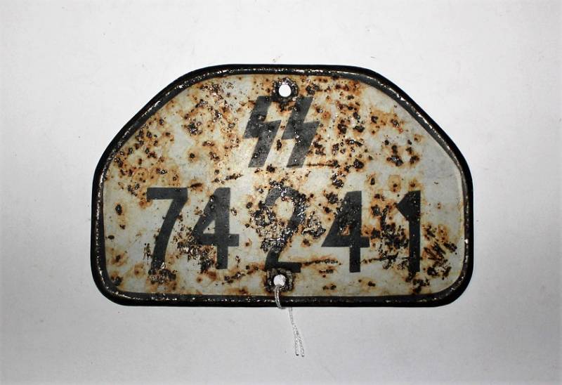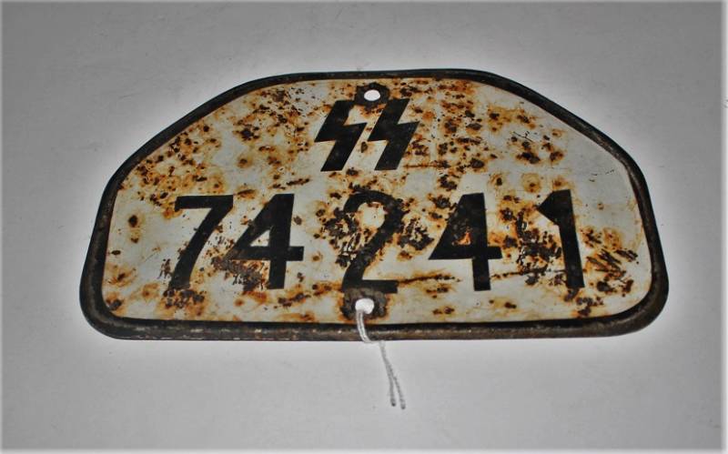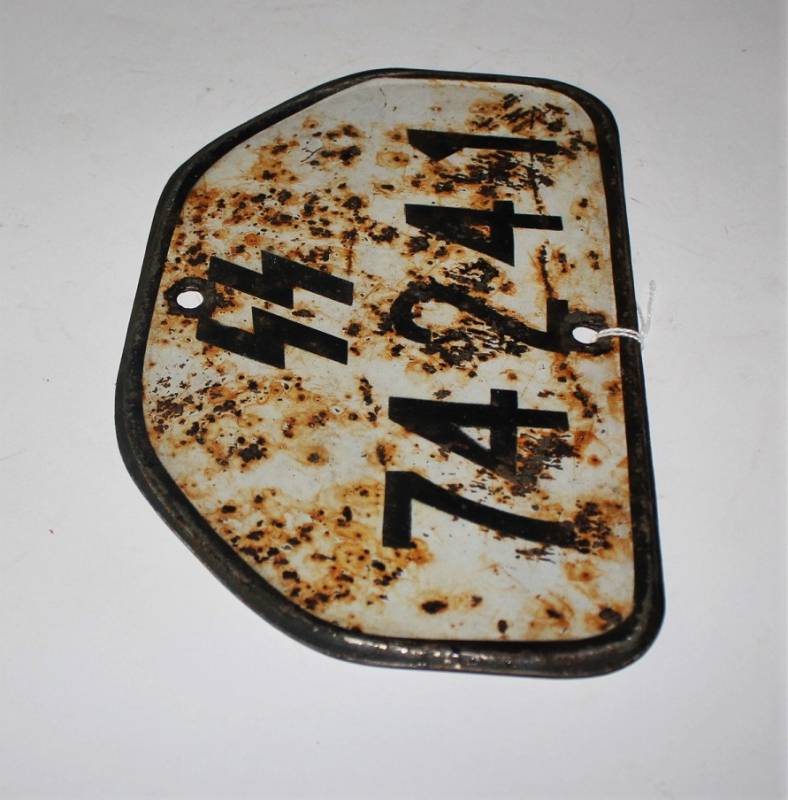 Targa posteriore in lamiera per motocicletta W.SS in buone condizioni, ma con evidenti segni del tempo e dellŽuso, numerazione ben leggibile. Originale 100% WWII periodo.
