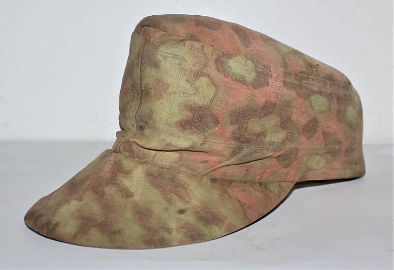 Berretto M43 da truppa camo W.SS, condizioni usato e portato, non restaurato, qualche piccolo buchino sul frontale e sulla calotta, taglia circa 56-57. Originale 100% WWII periodo.