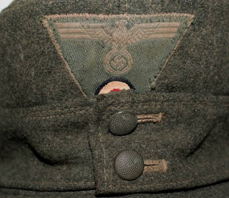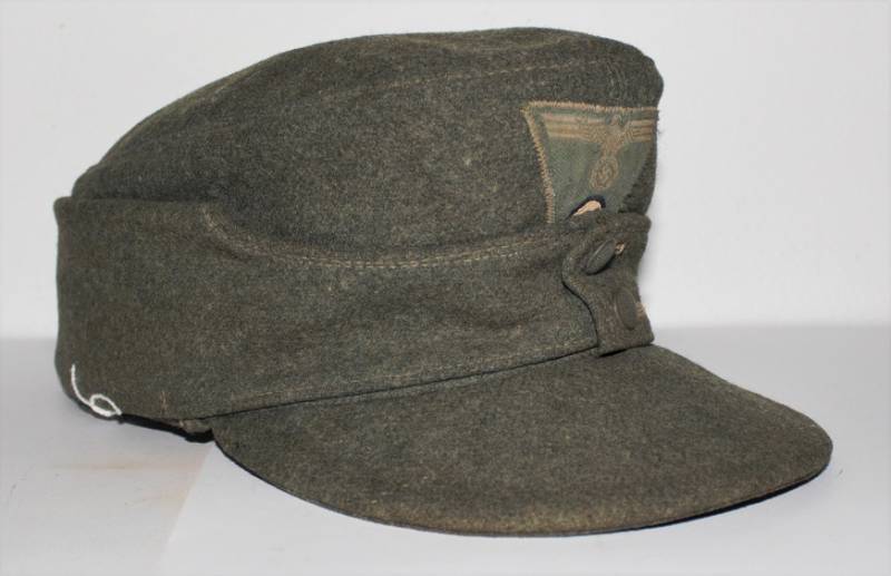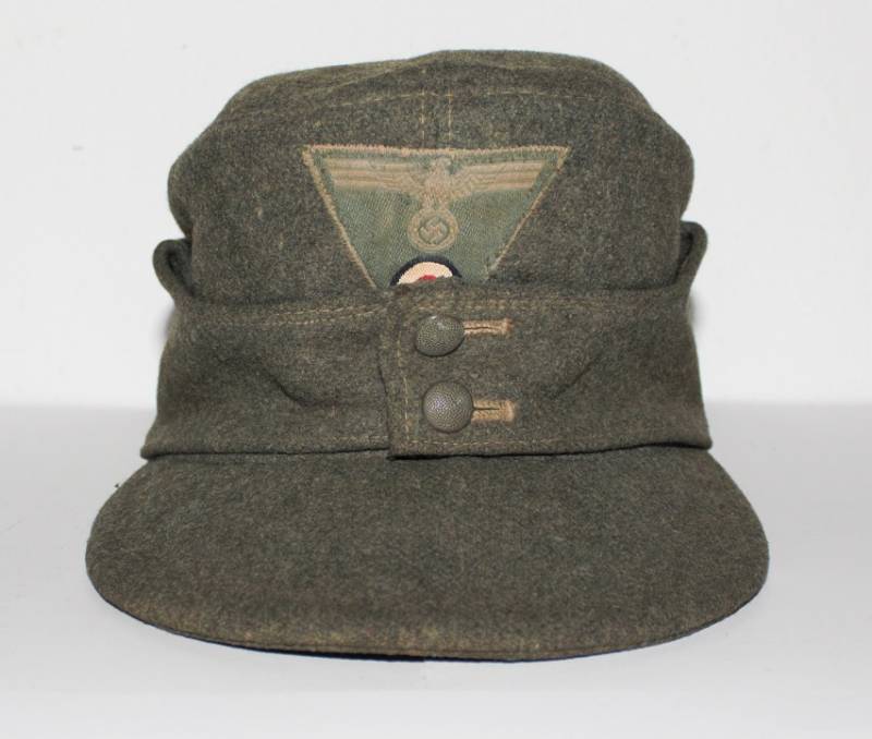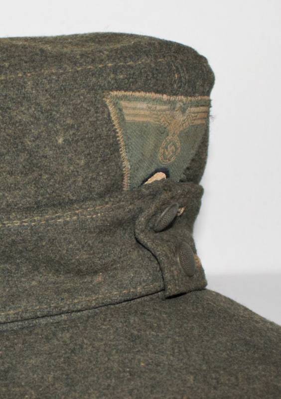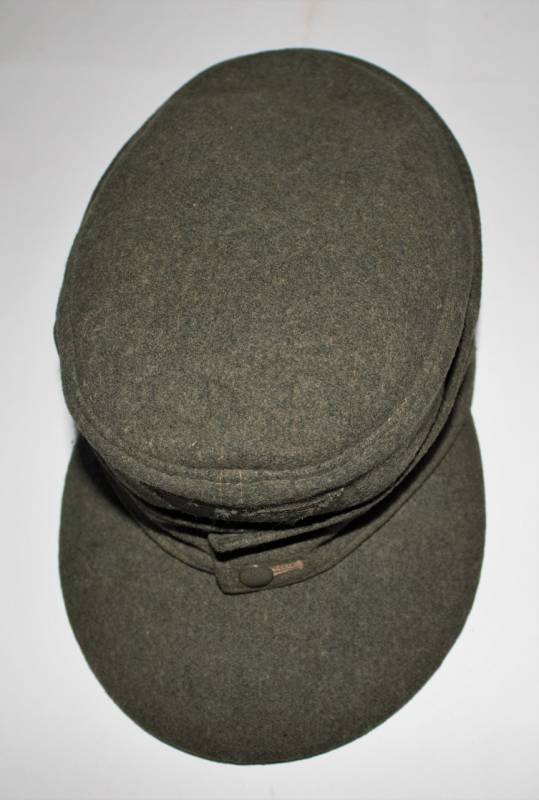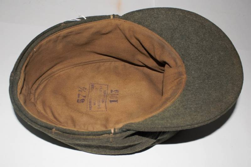 Berretto M43 Wehrmacht da truppa in ottime condizioni realizzato in panno di lana feldgrau, senza buchi o strappi leggeri segni di uso e del tempo, marcato internamente con logo fabbricante, taglia 57,5 e data 1943. Originale 100% WWII periodo.