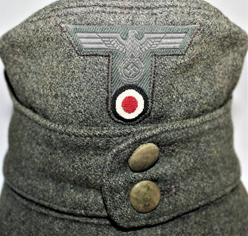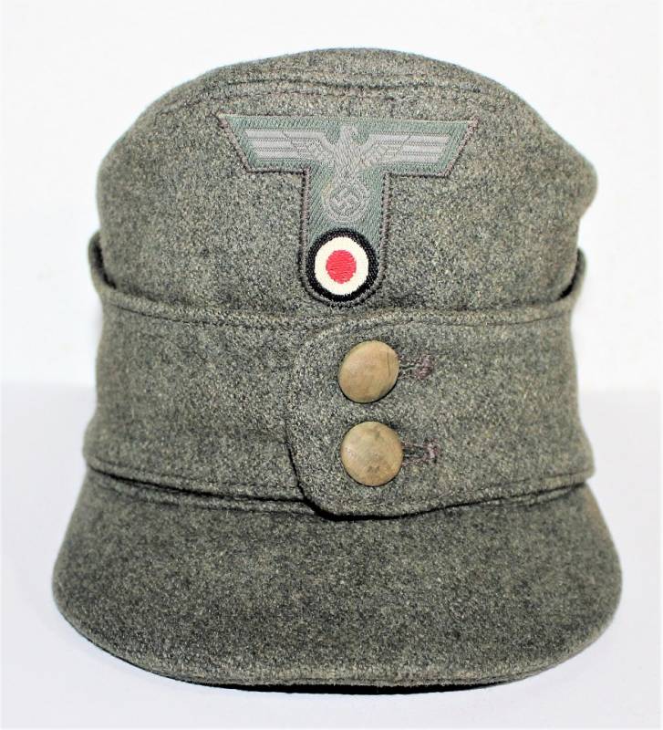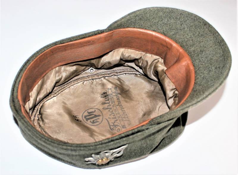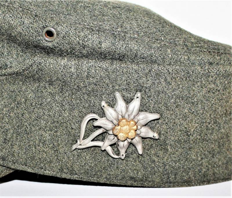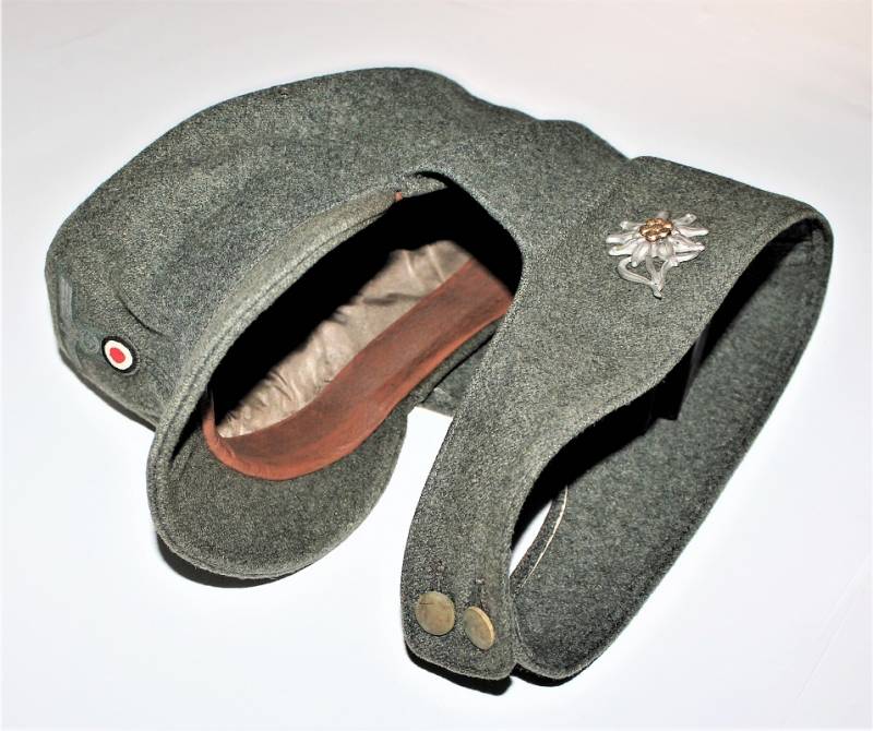 Berretto M41 da Truppa Gebirgsjäger WH in condizioni ottime, completo in ogni sua parte, non restaurato o riparato, senza buchi o strappi, cuciture perfette, fregi montati in epoca, edelweiss montato sul lato sinistro in epoca, il tutto solo con leggera patina del tempo e dell´uso, costruzione regolamentare per berretto Gebirgsjäger.