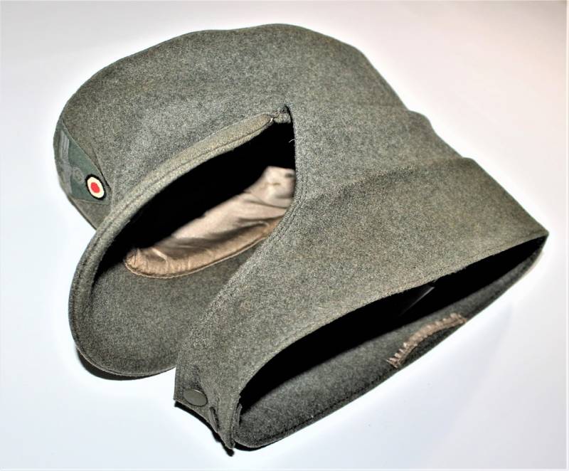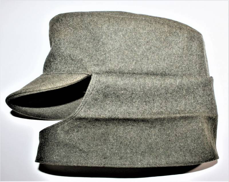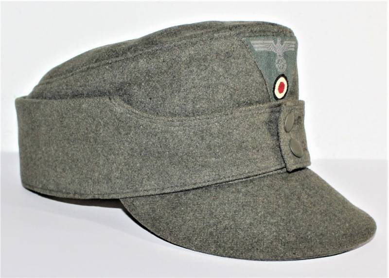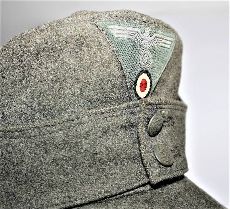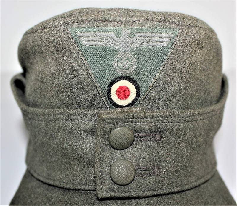 Berretto M43 da truppa della WH, nato in stoffa di lana feldgrau, ottime condizioni, leggeri segni del tempo e dellŽuso, non restaurato o riparato, senza buchi o strappi, cuciture perfette, fregio regolamentare M43 montato in epoca e cucito a macchina.