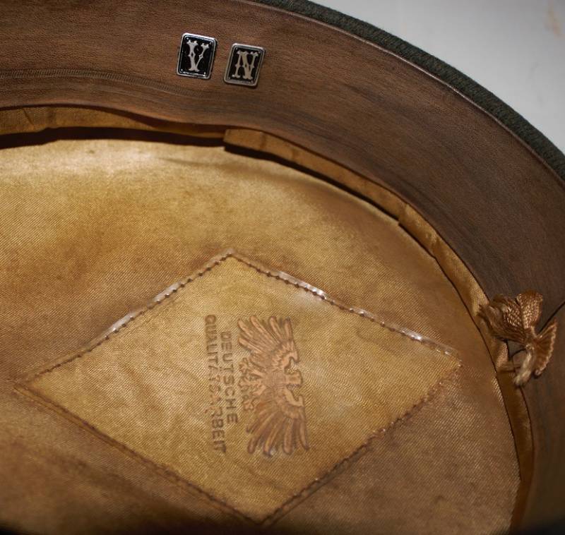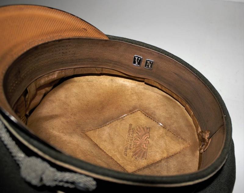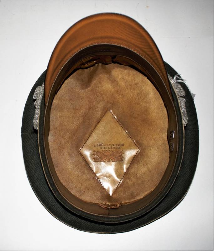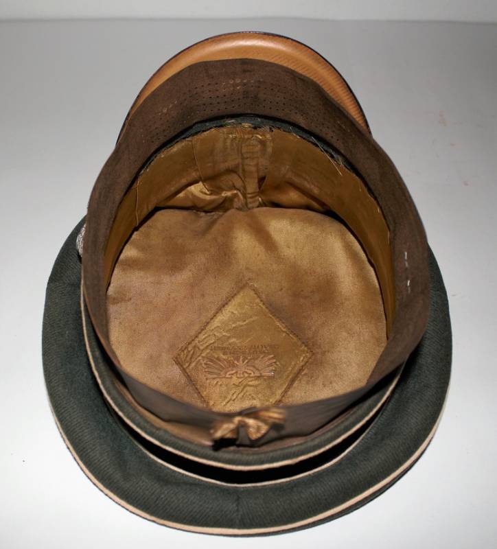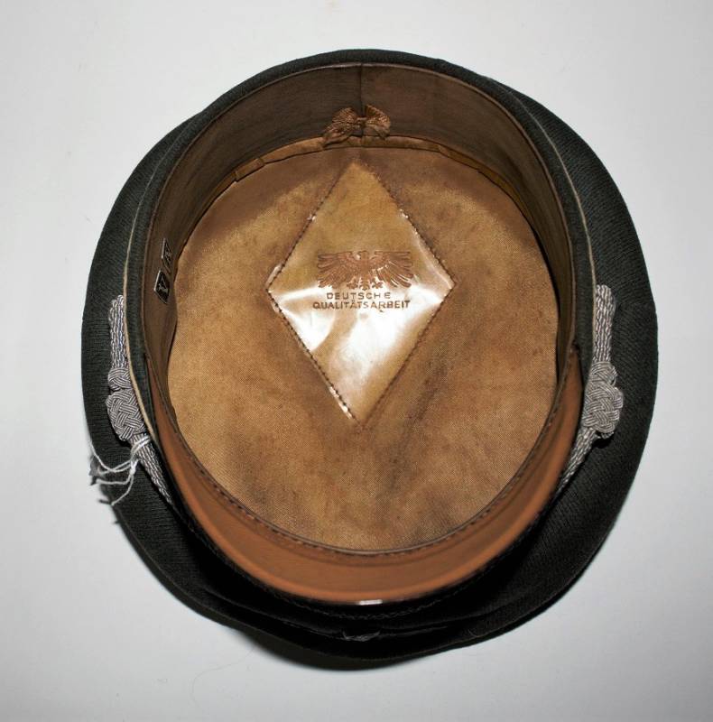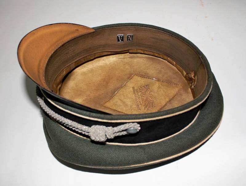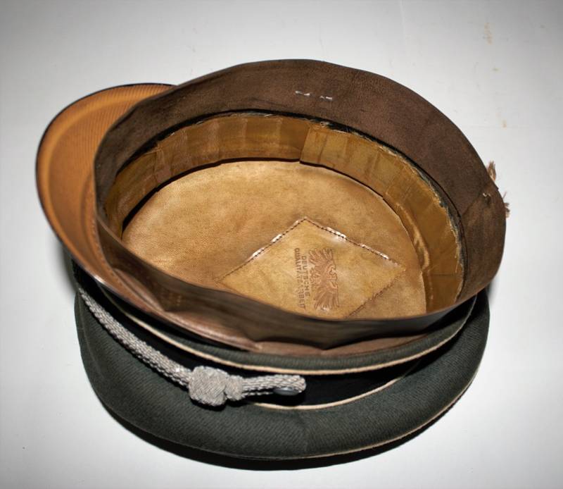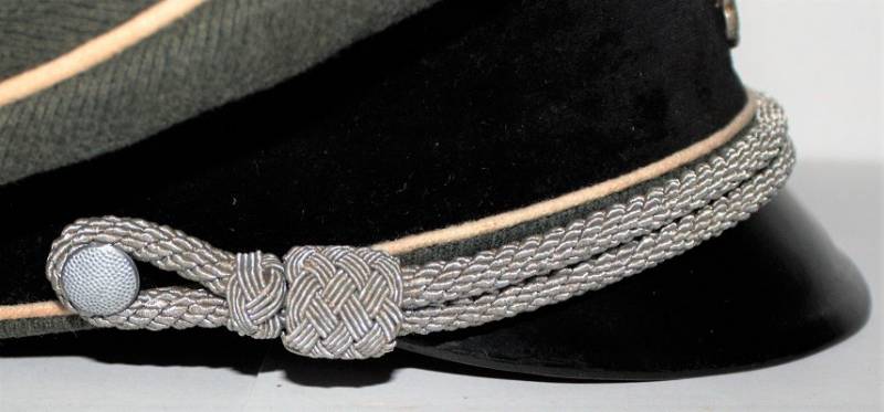 Bellissimo schirmmutze da Ufficiale W.SS fanteria waffenfarbe bianco in ottime condizioni, leggeri segni di usura e del tempo, realizzato in panno di gabardina diagonale, completo in ogni sua parte senza buchi o strappi, interno con diamante in celluloide con logo del fabbricante, iniziale dellŽUfficiale sul parasudore. Taglia circa 57. Originale 100%. WWII periodo.