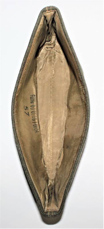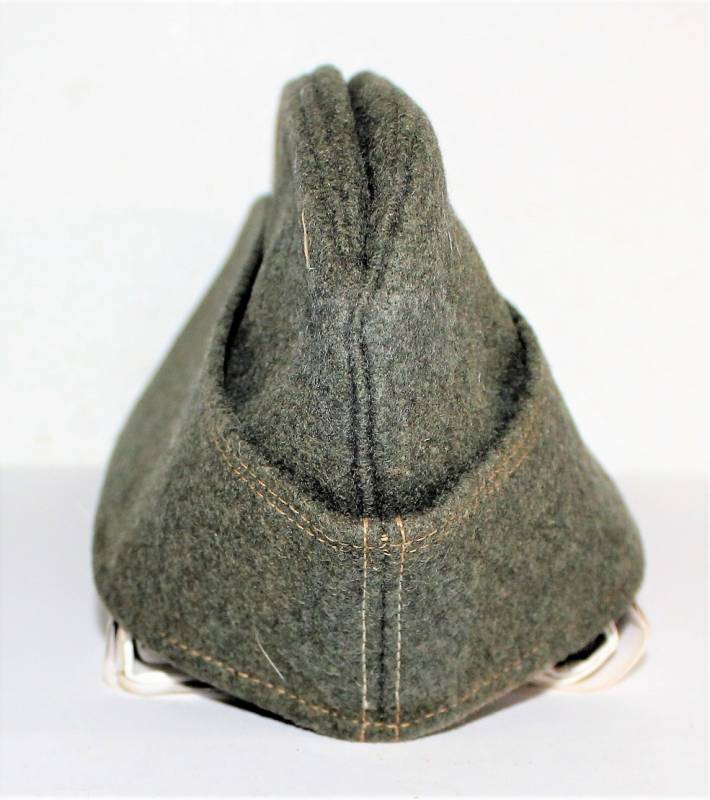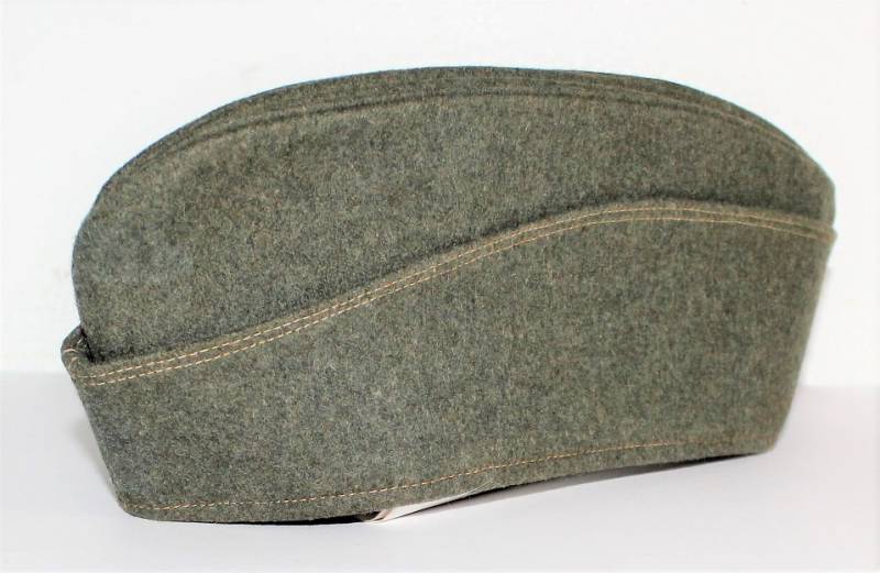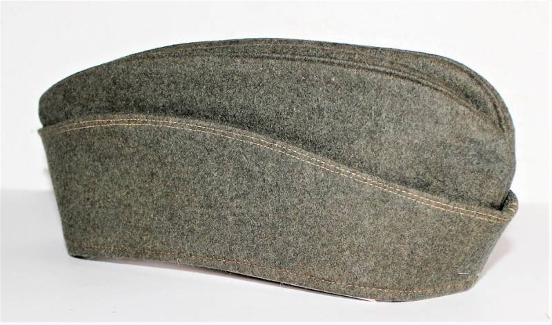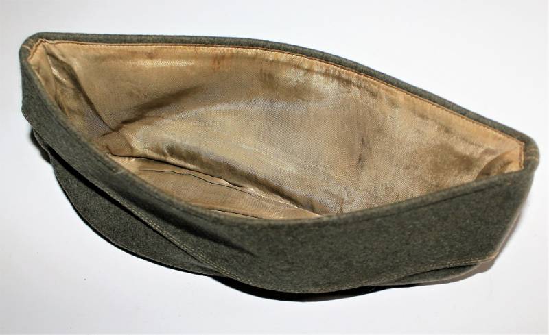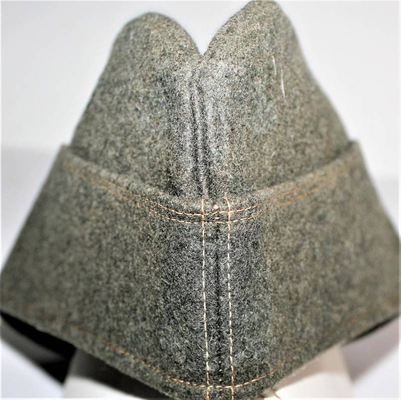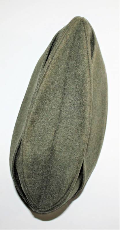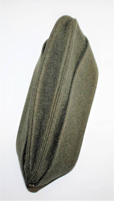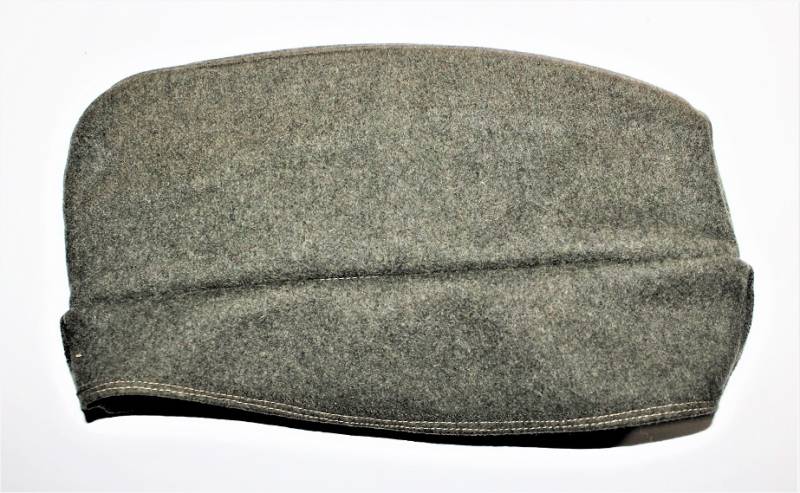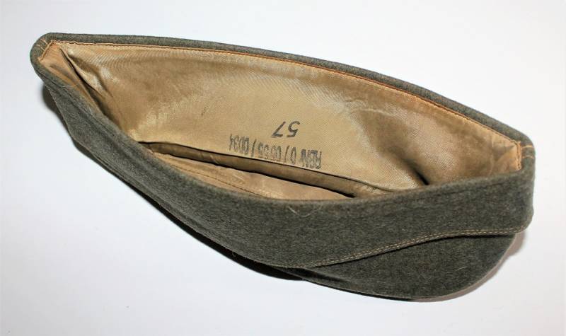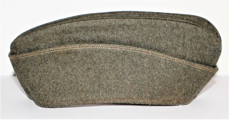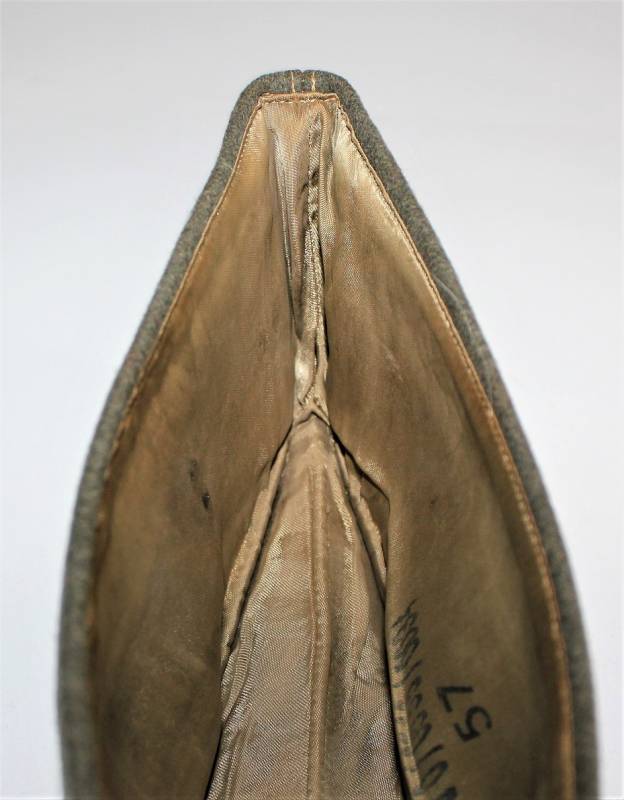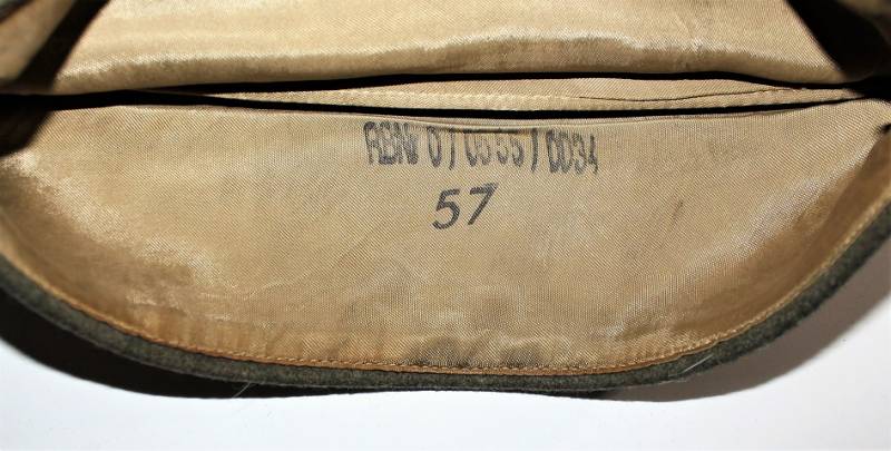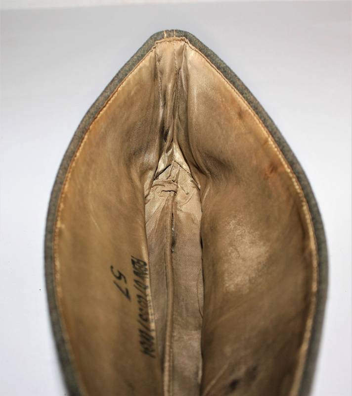 Bustina da truppa delle W.SS nata in panno di lana feldgrau in ottime condizioni, solo con leggerissima patina del tempo, non restaurata o riparata, senza buchi o strappi e con cuciture perfette, marcata internamente con RBN n... e taglia 57.