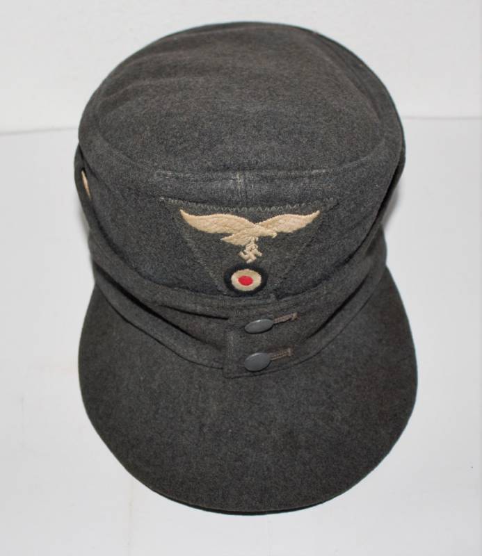 Berretto M43 luftwaffe da truppa in buone condizioni, completo in ogni sua parte, fregio regolamentare M44 cucito a macchina, leggeri segni dŽuso e del tempo, senza buchi o strappi, realizzato in panno di lana blu, interno marcato con RBN..., Taglia 57,5. Originale 100%. WWII periodo.