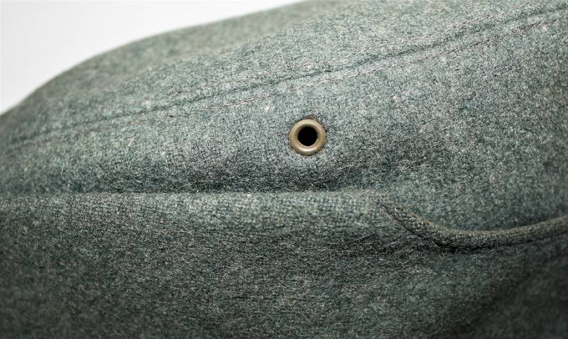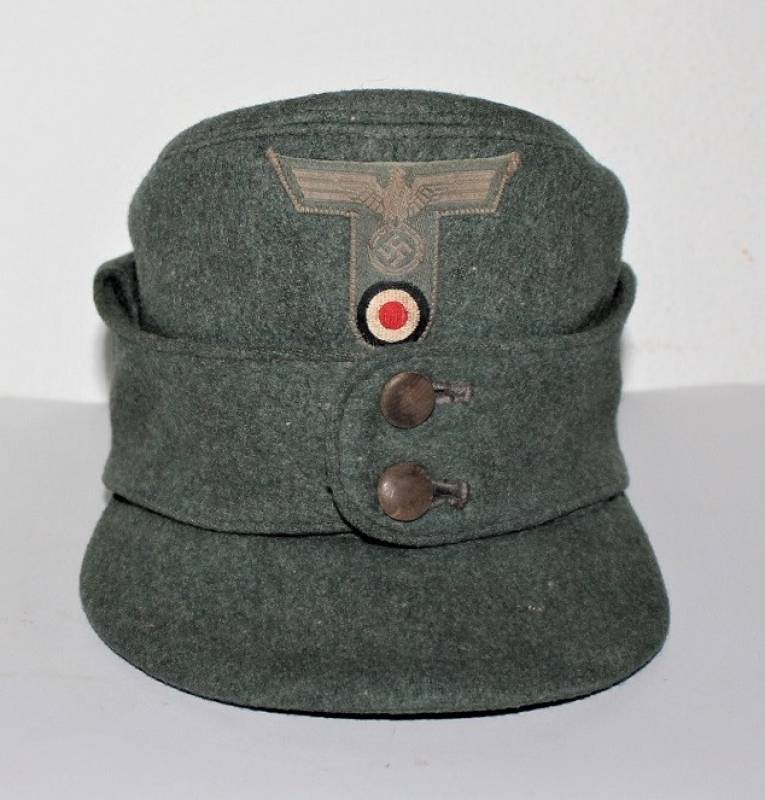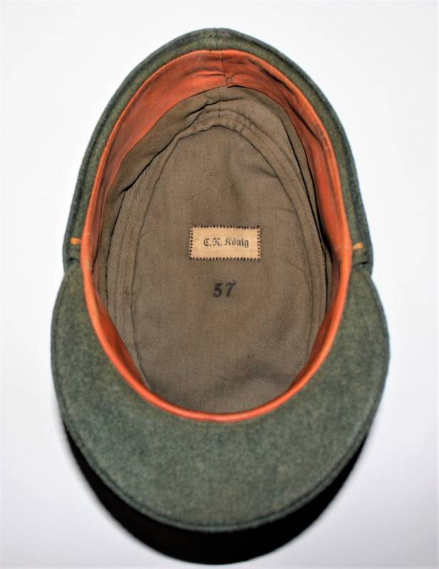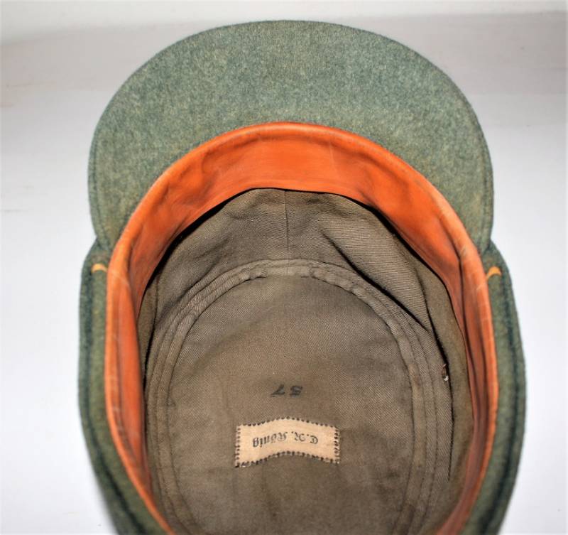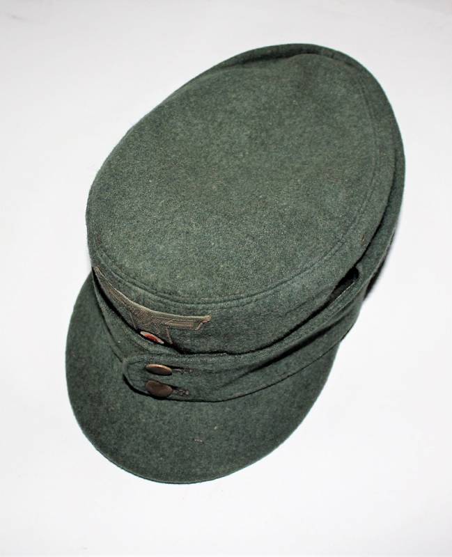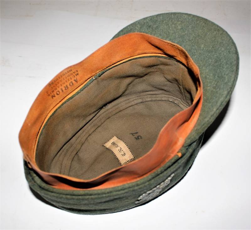 Raro bergmutze truppe alpine G.J. da truppa della Wehrmacht reparti sciatori, in ottime condizioni con leggeri segni di uso e del tempo, completo in ogni sua parte, fregio regolamentare a "T" cucito a macchina, realizzato in elegante panno di lana verde, marcato internamente con numero taglia 57 e etichetta in stoffa con nome del soldato. Originale 100%. WWII periodo.