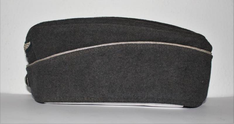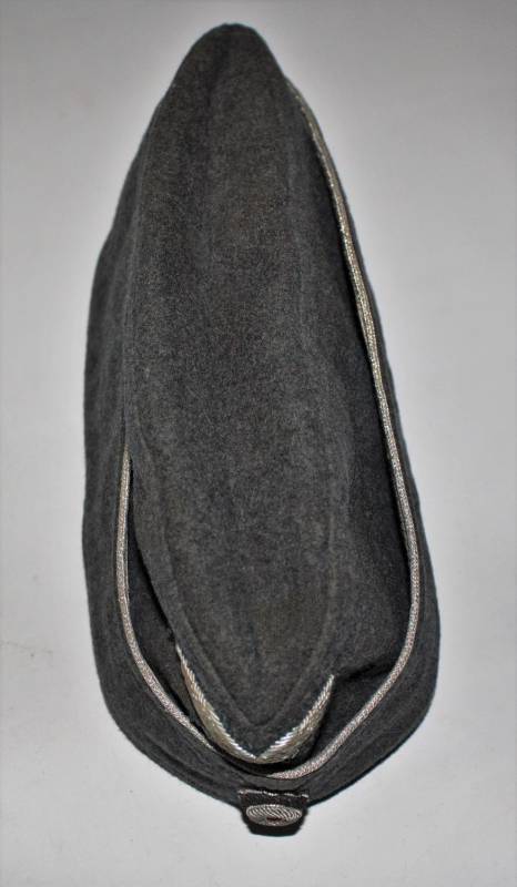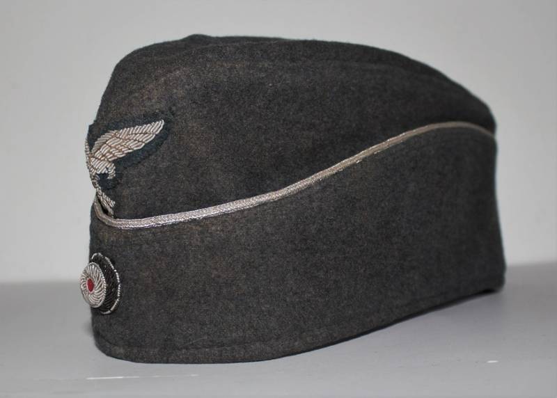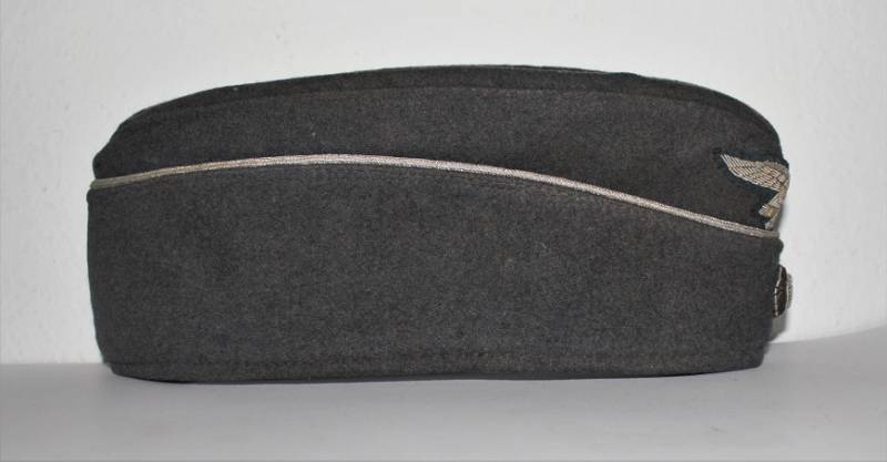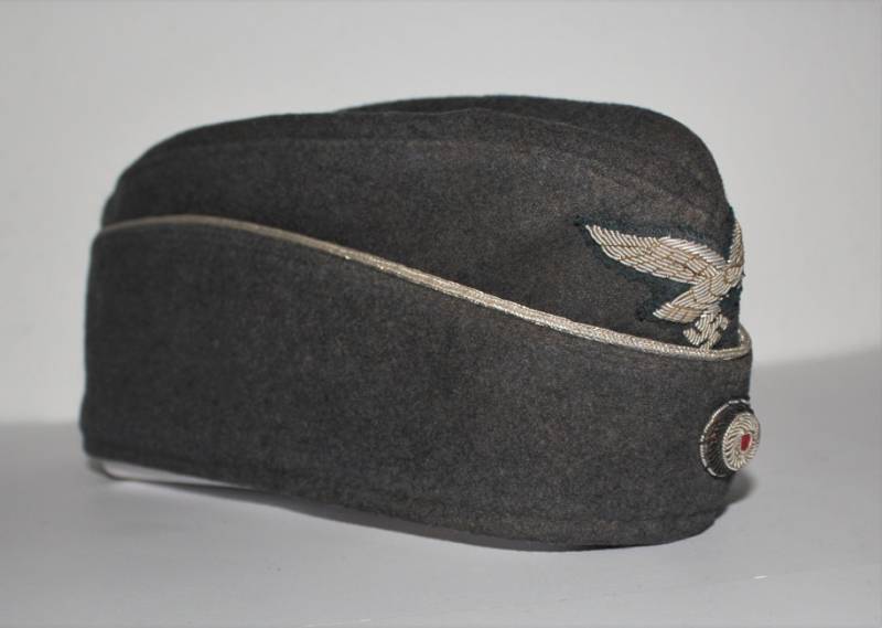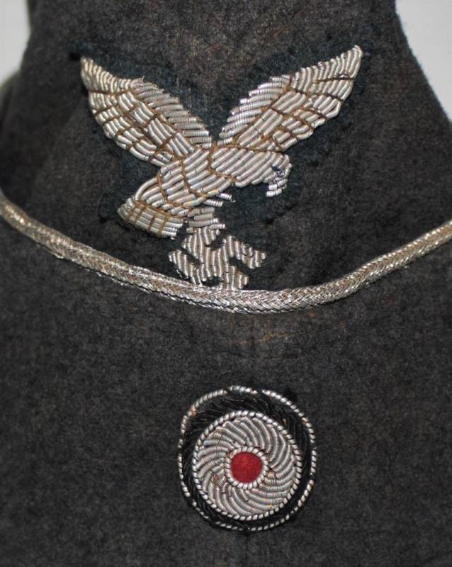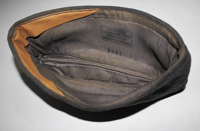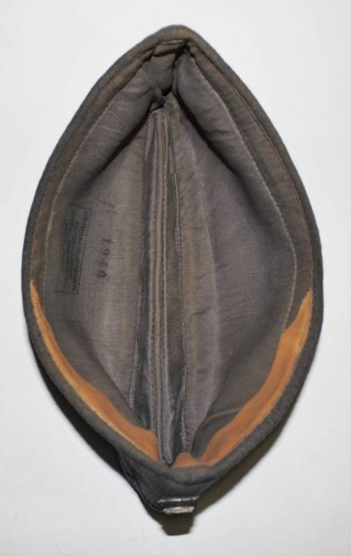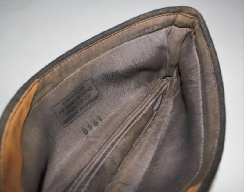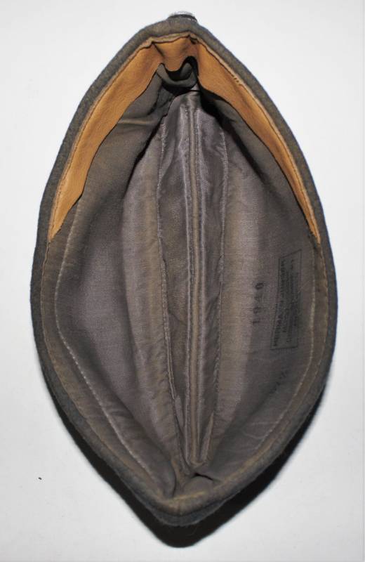 Stupenda bustina da Ufficiale della Luftwaffe in ottime condizioni quasi pari al nuovo, leggerissimi segni di uso e del tempo, completa in ogni sua parte, compreso fregi in canottiglia regolamentari da ufficiale montati in epoca, realizzata in elegante panno di lana blu. Interno marcato con logo del fabbricante, taglia 57,5 e data 1940. Originale 100% WWII periodo.