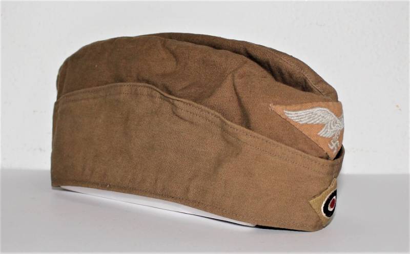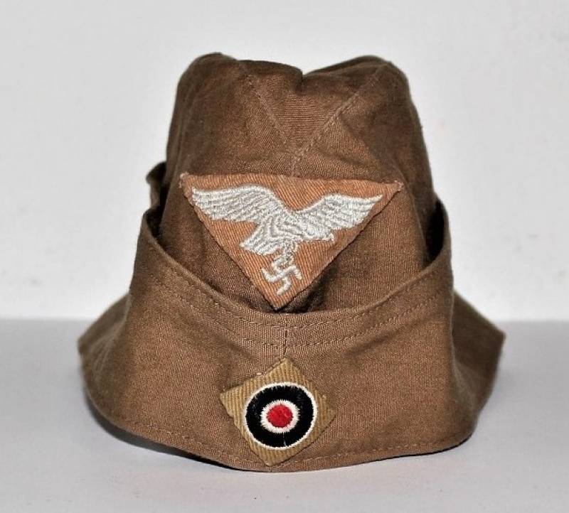 Bustina della LW tropicale DAK in condizioni ottime, mai usata, completa in ogni sua parte, fregi mai rimossi, nata in tela di cotone gialla, marcata internamente BEROLINA BERLIN 1941, taglia circa 56-57. Originale 100% WWII periodo.